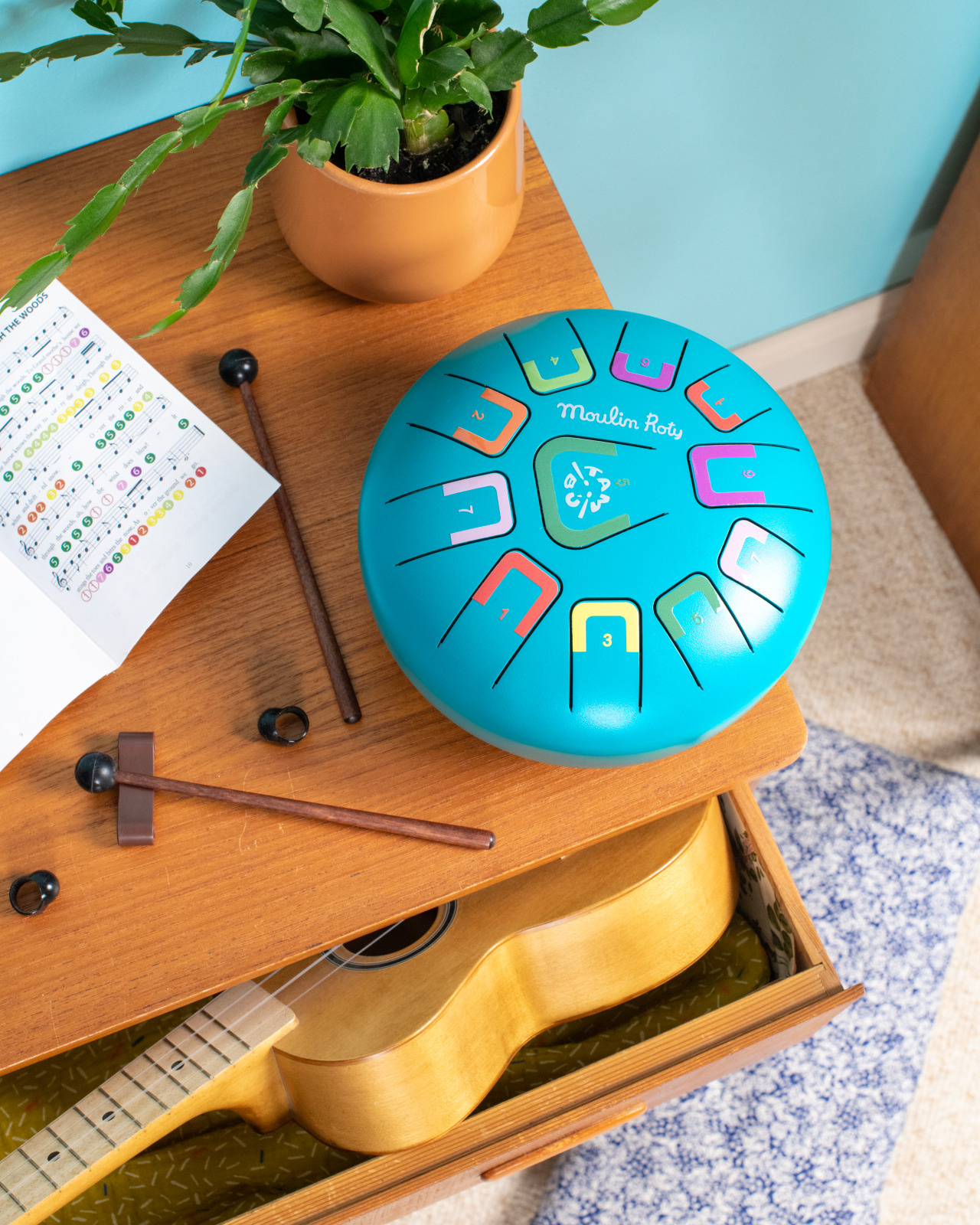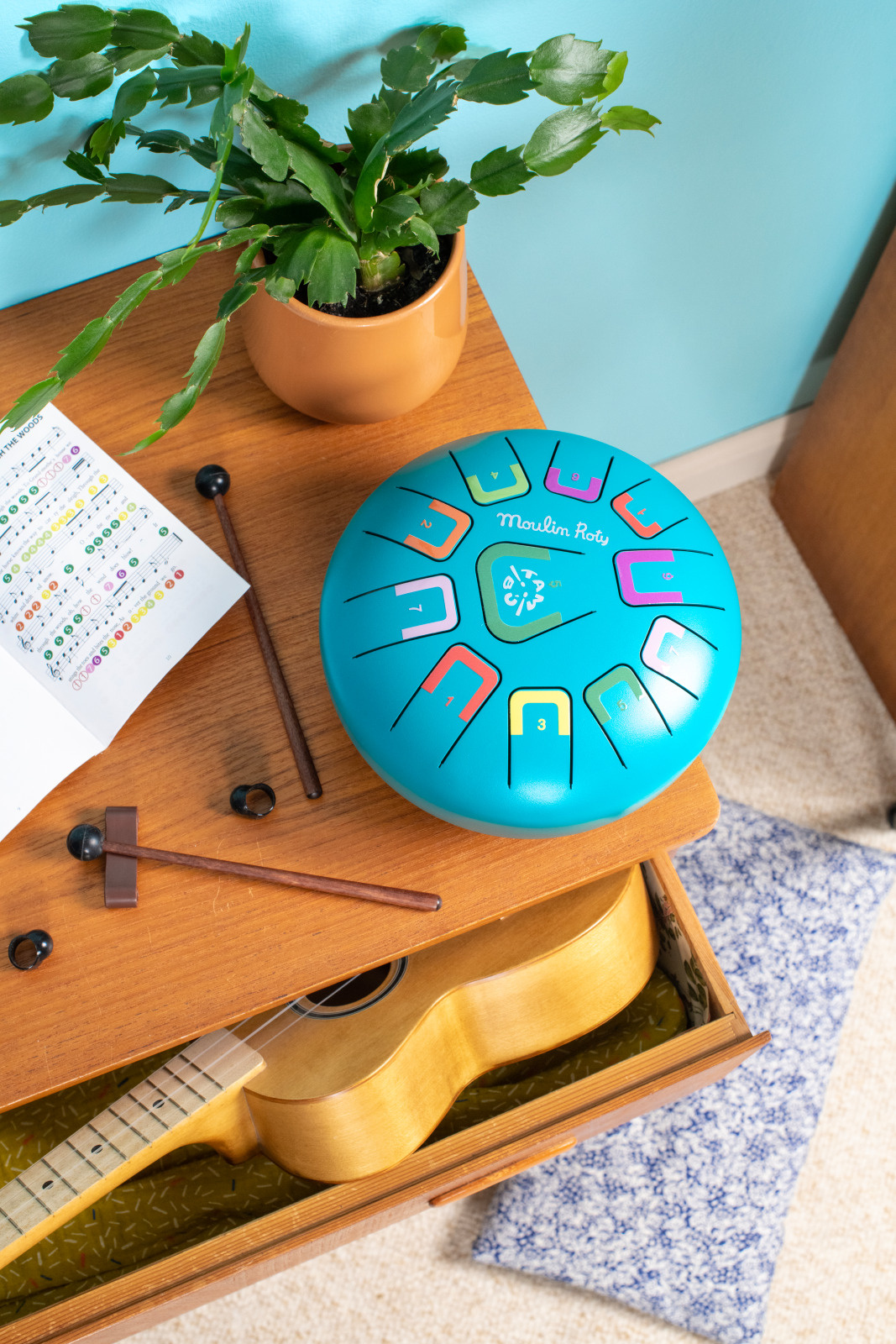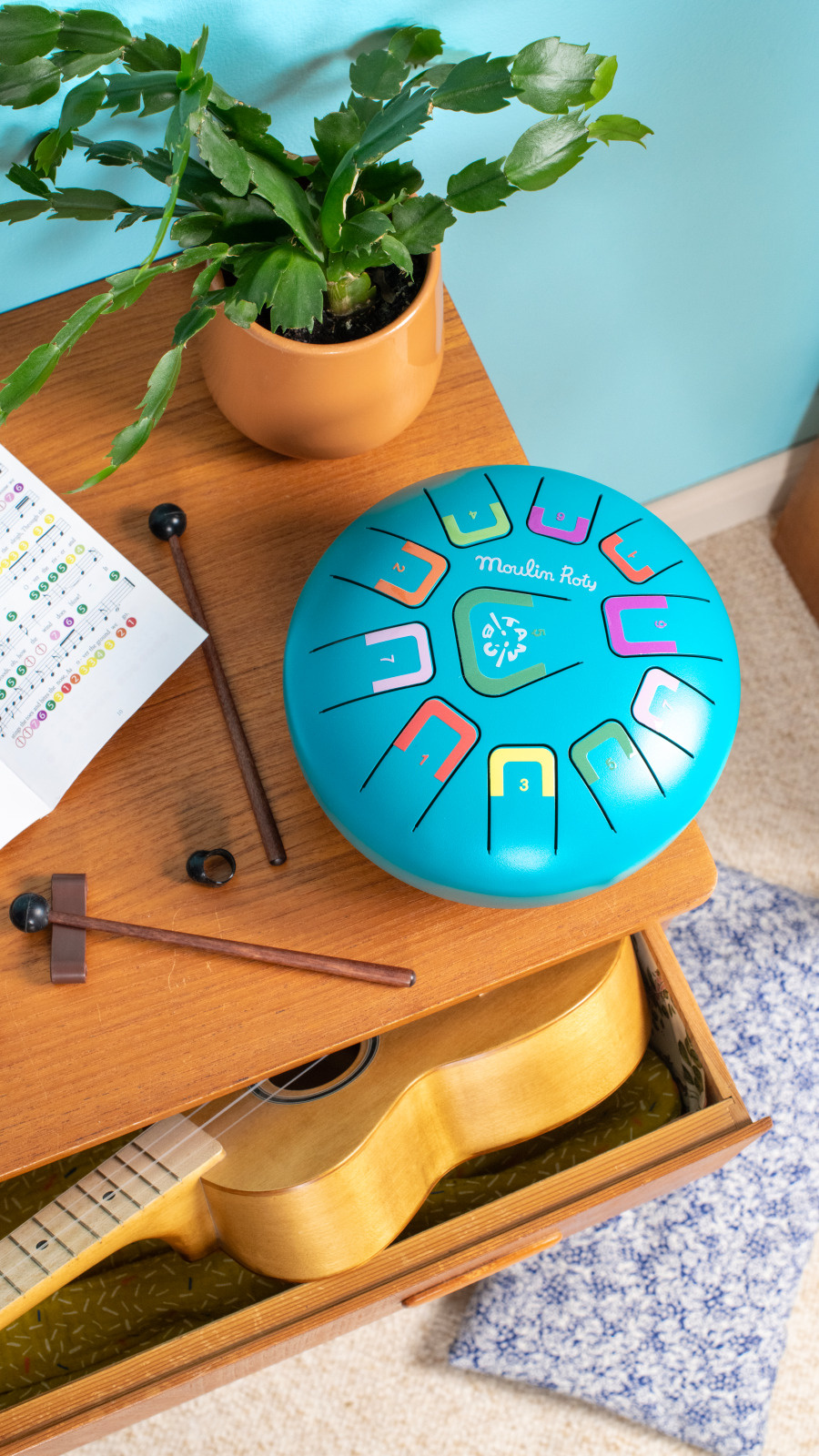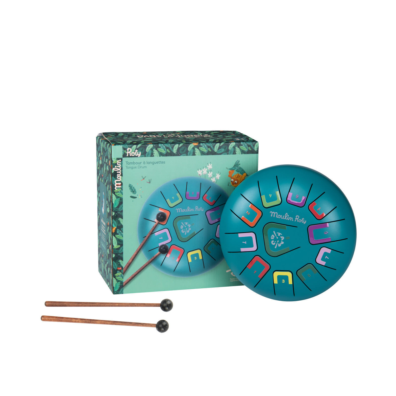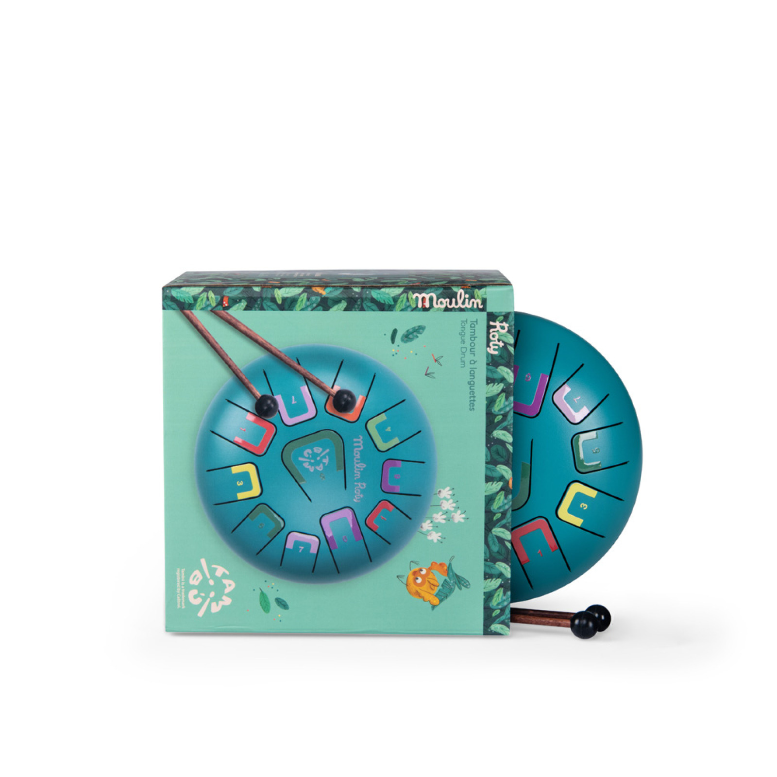 Dźwięki wydobywające się z bębenka to prawdziwa uczta dla uszu. Delikatne, melodyczne, kojące... Bębenek językowy francuskiej firmy Moulin Roty to doskonały instrument do wprowadzenia dziecko w świat muzyki i rytmu. Można na nim grać za pomocą dłoni lub załączonych do zestawu pałeczek perkusyjnych.