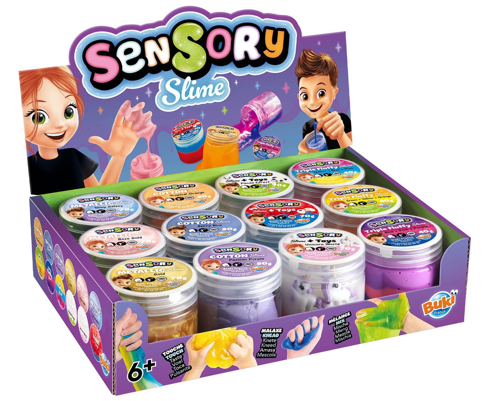 Zestaw 12 slime'ów do odkrycia podczas wielogodzinnej sensorycznej zabawy.