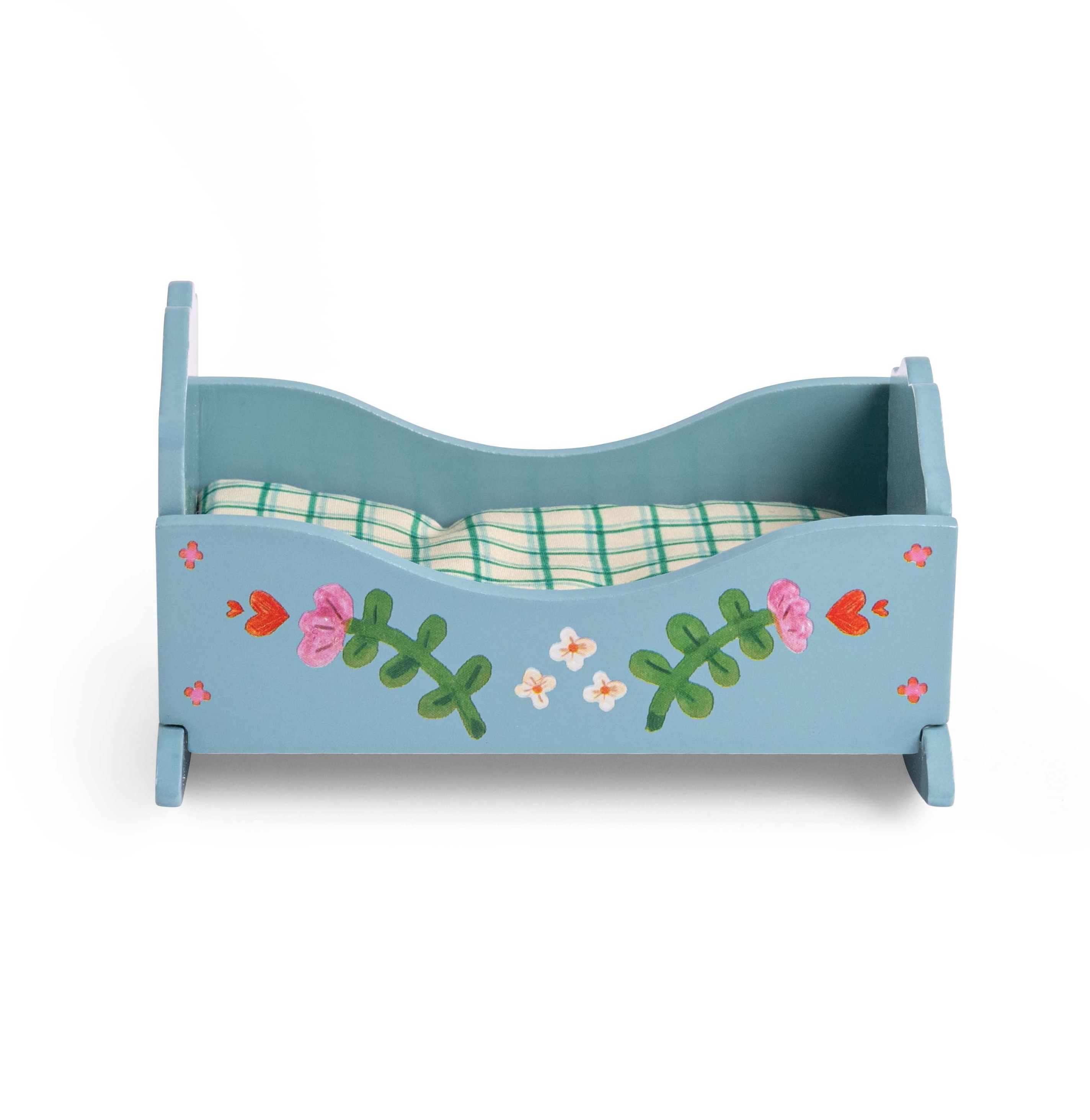 Drewniany mebelek zdobiony kwiatowym printem jest przeznaczony do zabawy misiami Bébé z kolekcji Les Minouchkas. Kołyska wyłożona jest mięciutkim materacem w kratę.