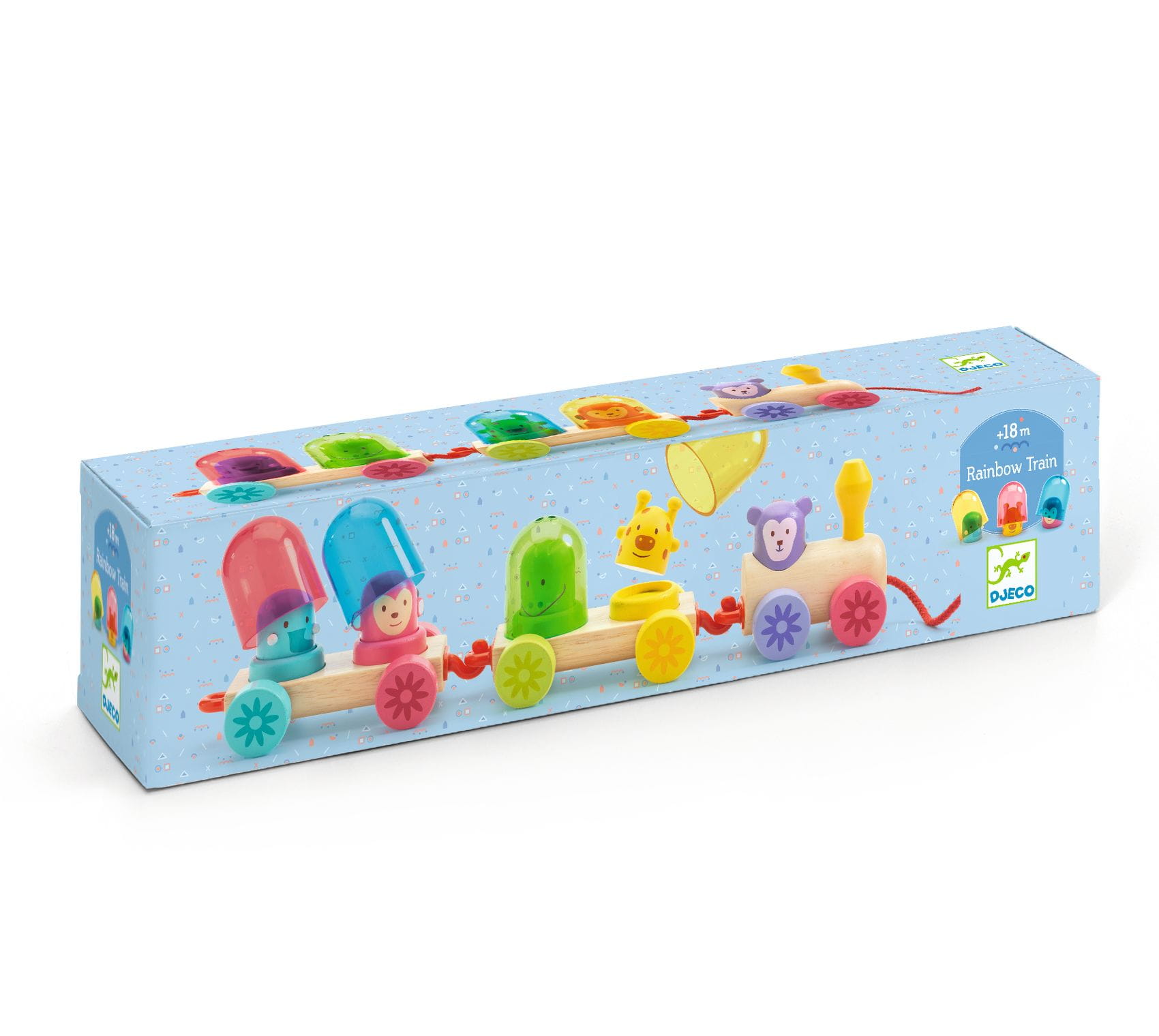 Drewniany tęczowy pociąg od Djeco to ciekawa forma zabawy, podczas której