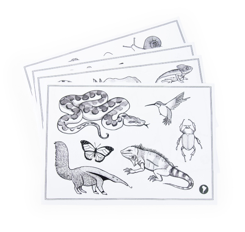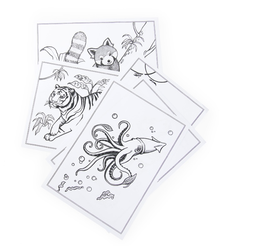 - 12 kart z różnymi zwierzętami świata,