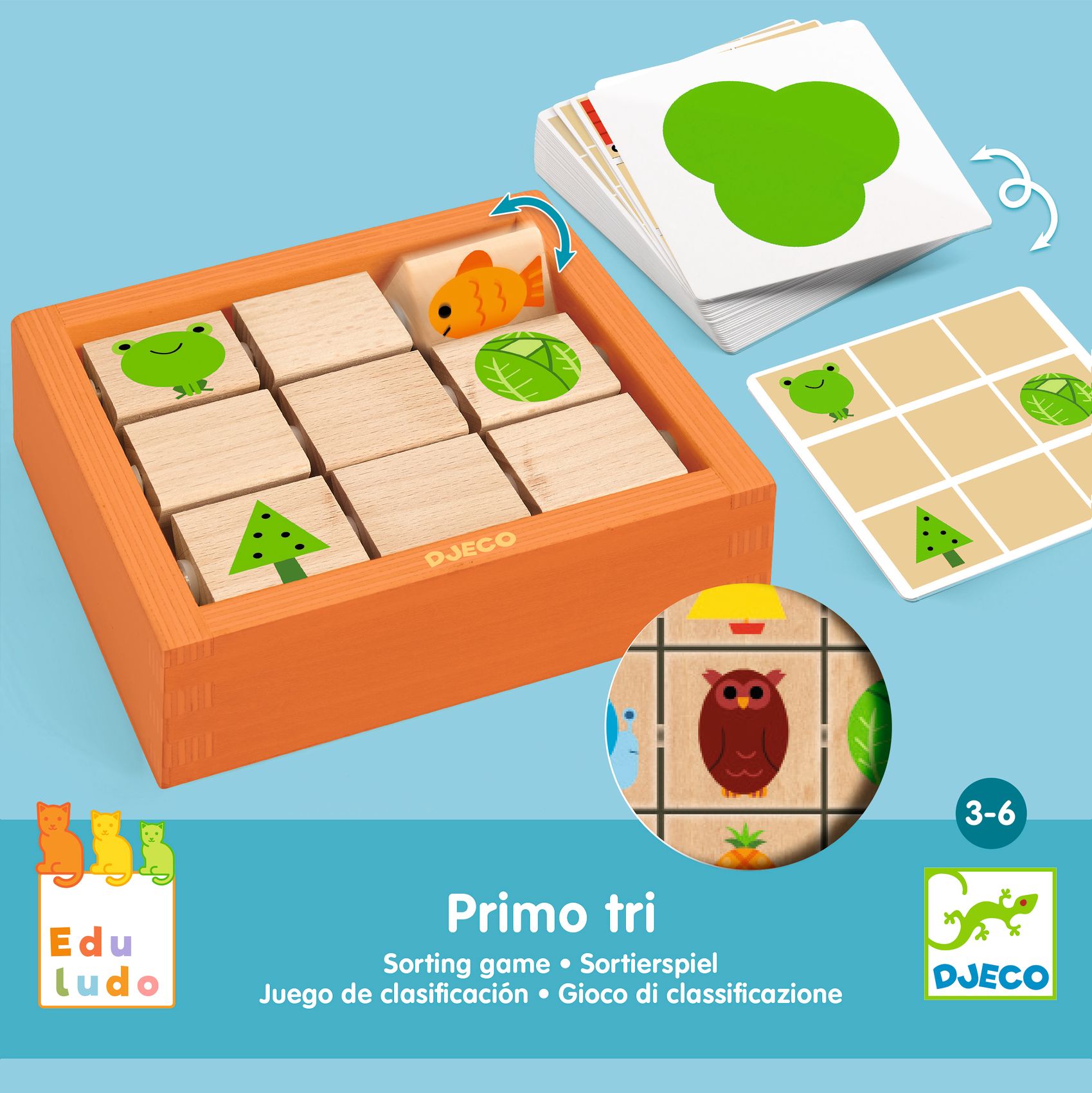 Nauka kategoryzowania i sortowania podczas świetnej zabawy: to wszystko, dzięki grze Primo Tri! Drewniana układanka z obrotowymi elementami to także doskonały trening manualny.