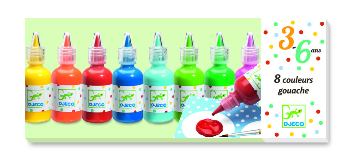 Zestaw 8 tubek farb gwaszowych w tradycyjnych kolorach. Gwasze to kryjąca