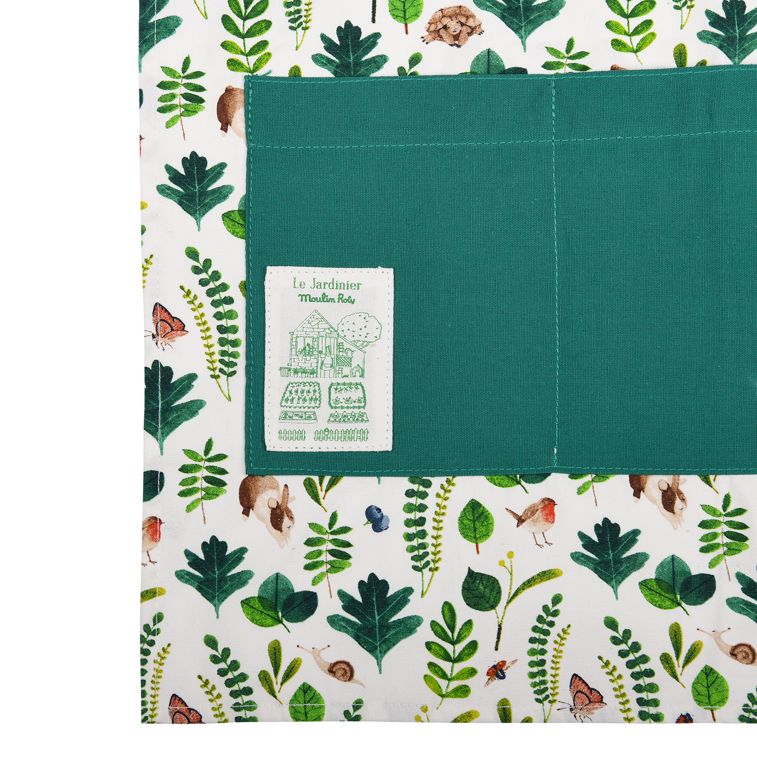 Fartuszek ogrodniczy specjalnie zaprojektowany dla małych ogrodników. Pięknie ilustrowany grafikami pochodzącymi z kolekcji Le Jardin du Moulin. Posiada 3 duże ciemnozielone kieszenie z przodu, aby zawsze mieć niezbędne narzędzia lub nasionka przy sobie.