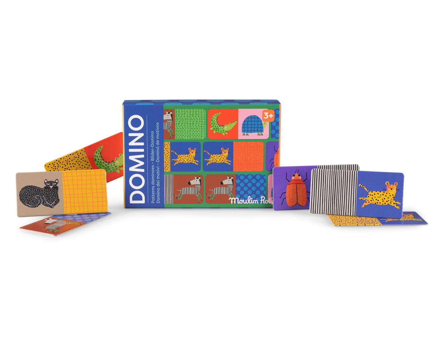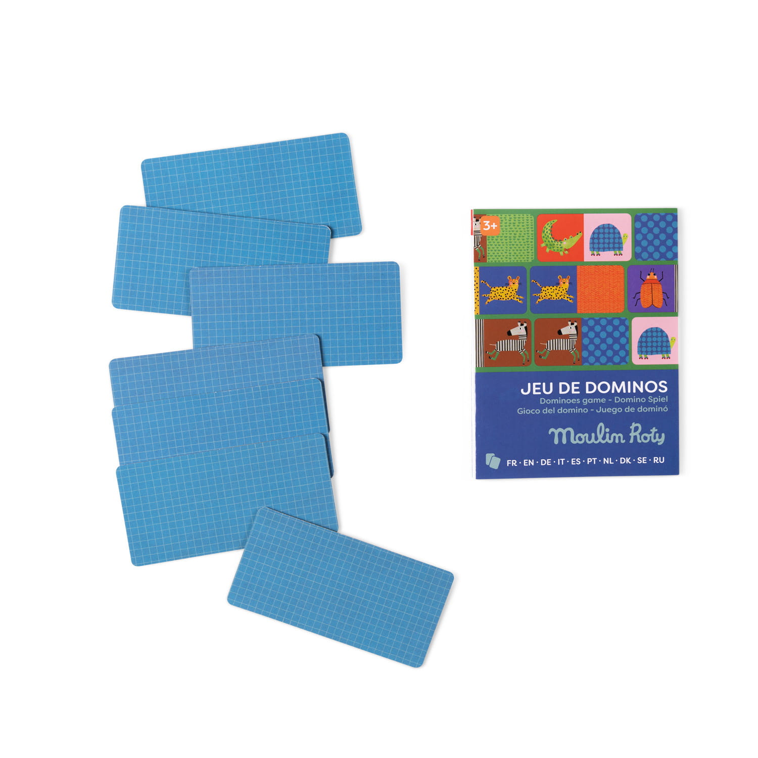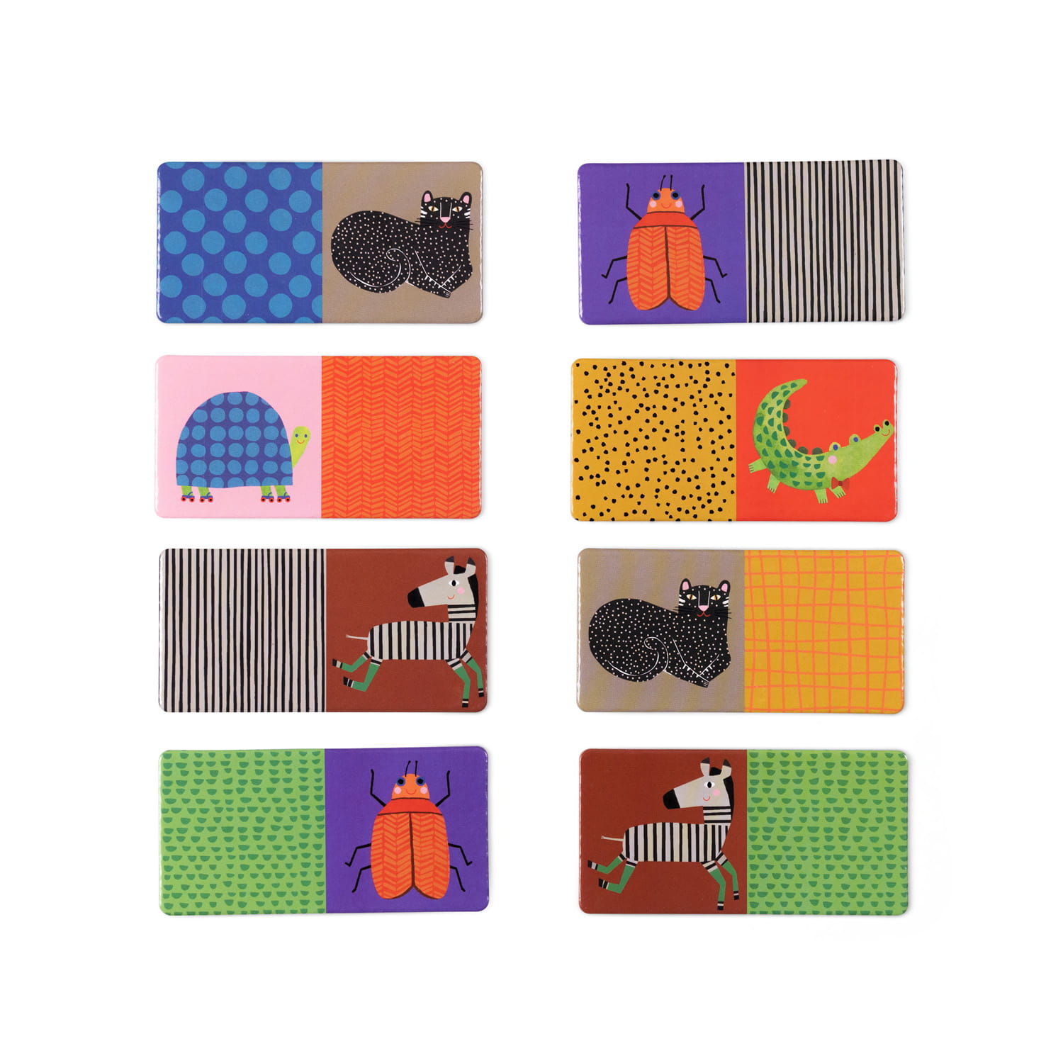 Klasyczna gra Domino w nowej odsłonie z kolekcji Les Toupitis. Celem rozgrywki jest układanie kart domina jedna po drugiej, dopasowując je na podstawie identycznych wzorów lub obrazków ze zwierzętami. Jeśli gracz A położył kartę z zielonym wzorem i zebrą, gracz B musi odnaleźć lub spróbować wylosować kartę albo z zielonym wzorem albo z zebrą. Gra toczy się dopóki któryś z graczy nie pozbędzie się wszystkich swoich kart.