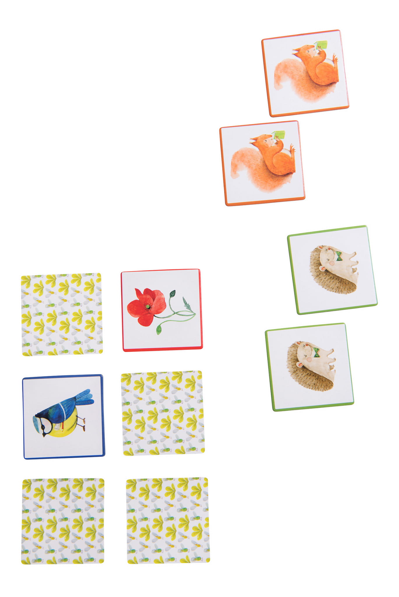 przedstawiające zwierzęta, kwiaty, liście ... Należy ułożyć karty obrazkami do spodu,