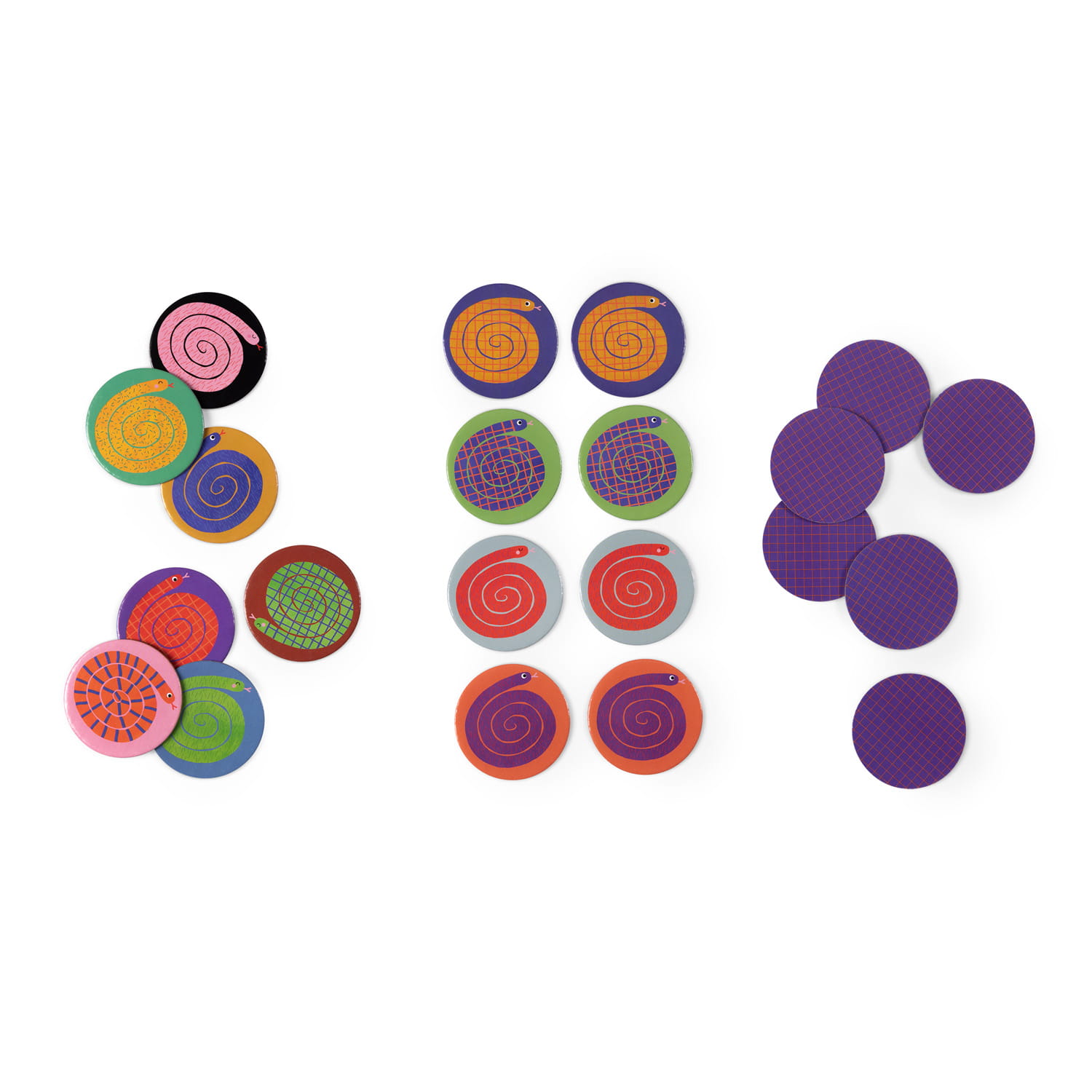 Klasyczna gra Memory w nowej odsłonie z kolekcji Les Toupitis. Celem rozgrywki jest odnalezienie jak największej ilości par. Zadanie nie jest łatwe, ponieważ na żetonach znajdują się ilustracje z różnokolorowymi wężami, różniącymi się szczegółami (np. kolorem tła lub wzorem na zwierzęciu). Gracze na zmianę odkrywają po 2 żetony. Jeśli uda się odnaleźć parę, gracz zabiera oba obrazki i może spróbować szczęścia ponownie. W razie pomyłki kolejka przechodzi na następną osobę.
