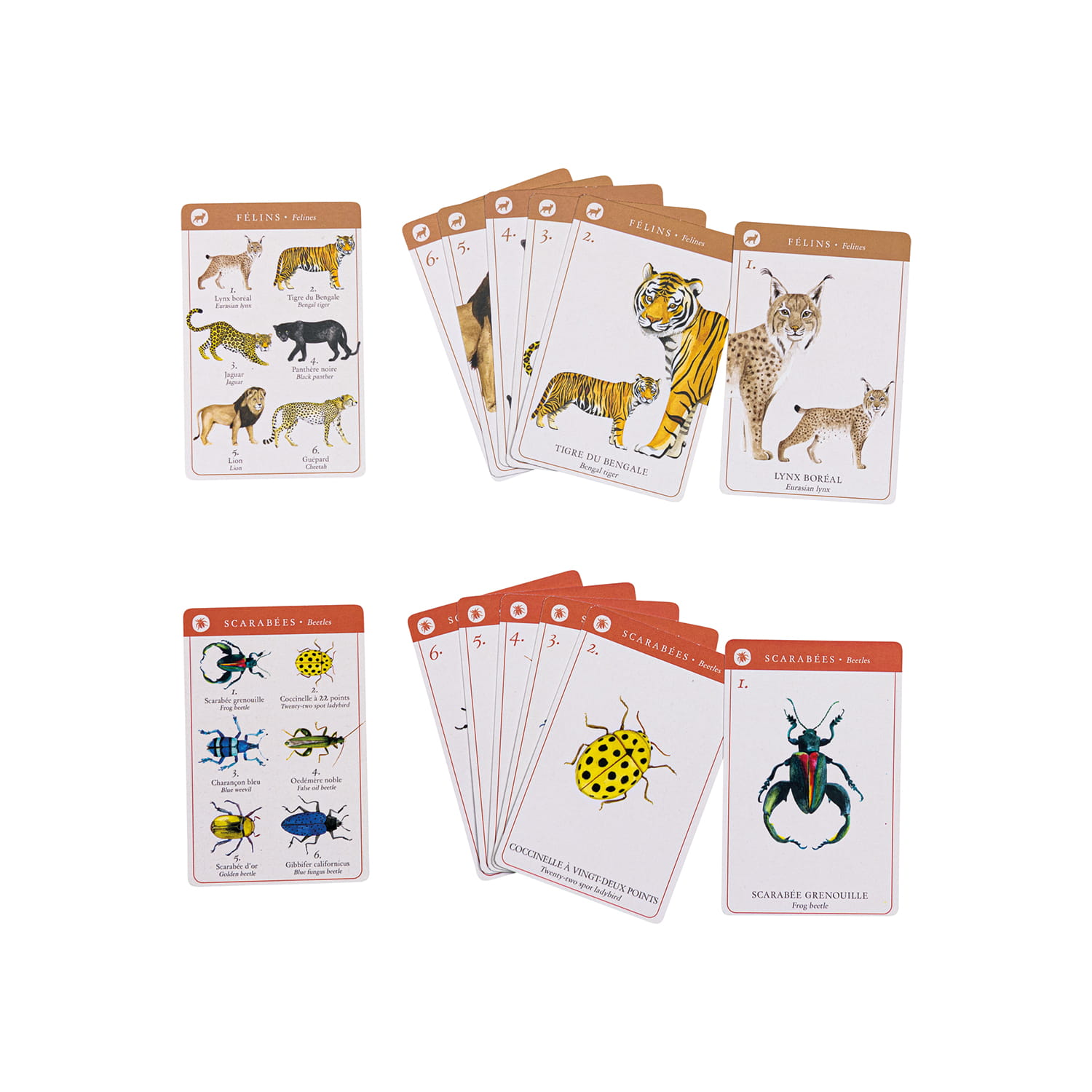 ptaki, ssaki naczelne i każda z nich składa się z 6 ponumerowanych kart