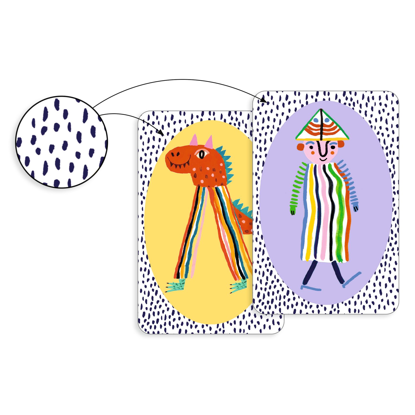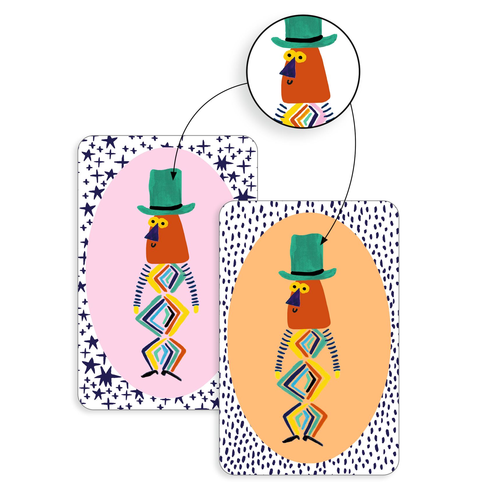 Wszyscy gracze grają jednocześnie, dlatego gra jest bardzo dynamiczna i nieprzewidywalna. Zadanie graczy polega na dopasowaniu swoich kart do wiodącej karty znajdującej się na środku stołu. Wybrana karta musi posiadać identyczny wzór, postać lub kolor tła. Na ilustracjach znajdują się zabawne postacie stworzone przez ilustratorkę Janę Glatt.