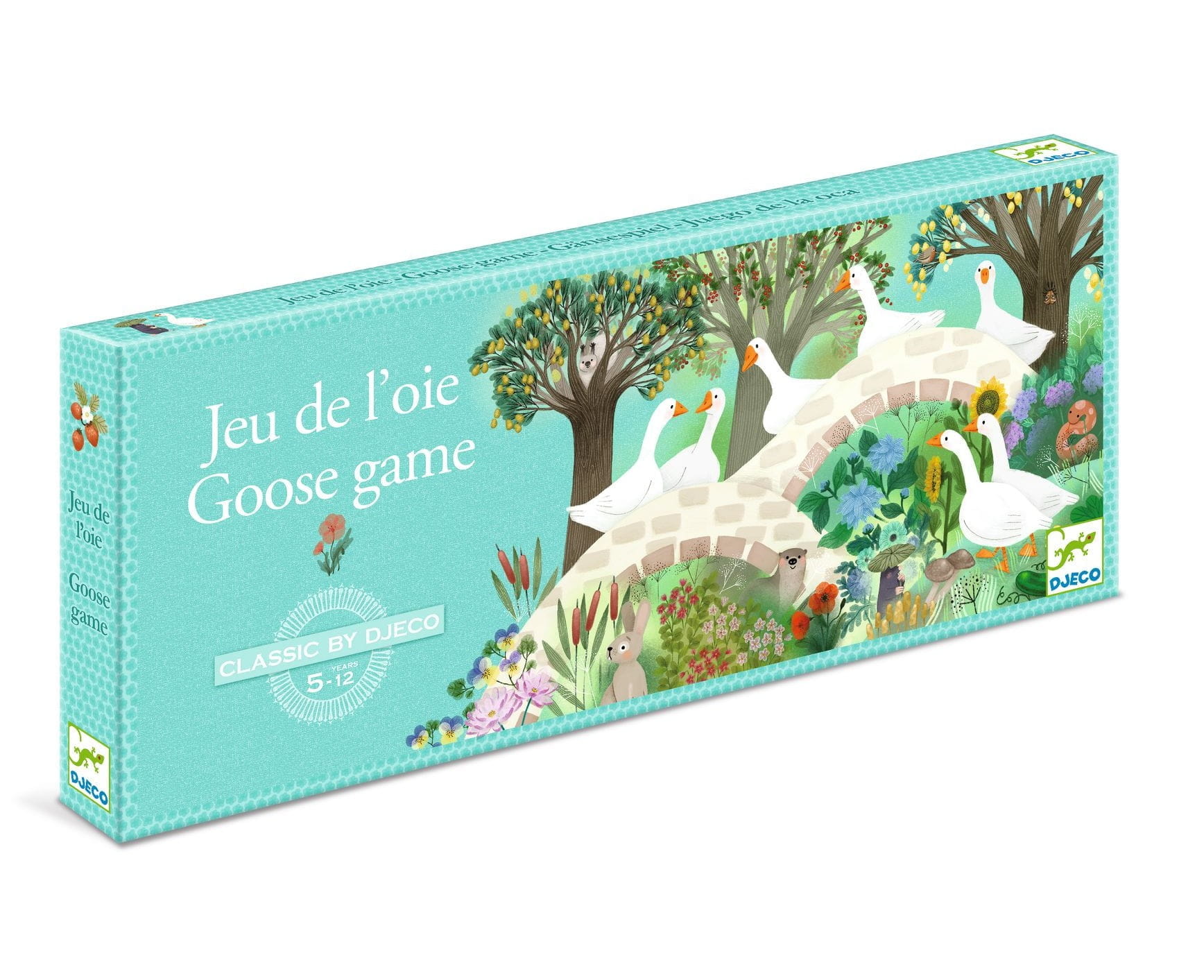 Klasyczna gra w Gęsi w odsłonie od Djeco. Pięknie ilustrowana plansza z 63 polami gry, ułożonymi w spiralę.