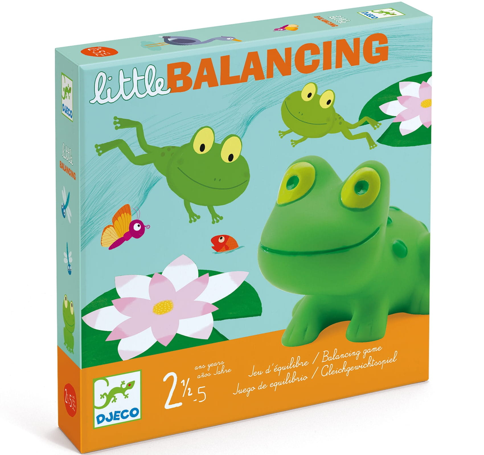Gra towarzyska -Zawiera figurki żabek, staw, krążki przedstawijące lilie wodne, paliki i żetony na nagrody.W czasie gry dzieci umieszczaja po koleji ustawijąc przedmioty na stawie w kolejności palik, krążek z lilia wodną.Na szczyt kładzie się żabkę.Ilość elementów ustawionych, tak aby nie przewróciły daje graczowi odpowiednią ilość żetonów. Po skńczonej grze żetony zlicza się. Kto ma najwięcej, ten wygrywa. Walory edukacyjne: rozwój małej motoryki dłoni, koordynacji oko-ręka, wyobraźni.