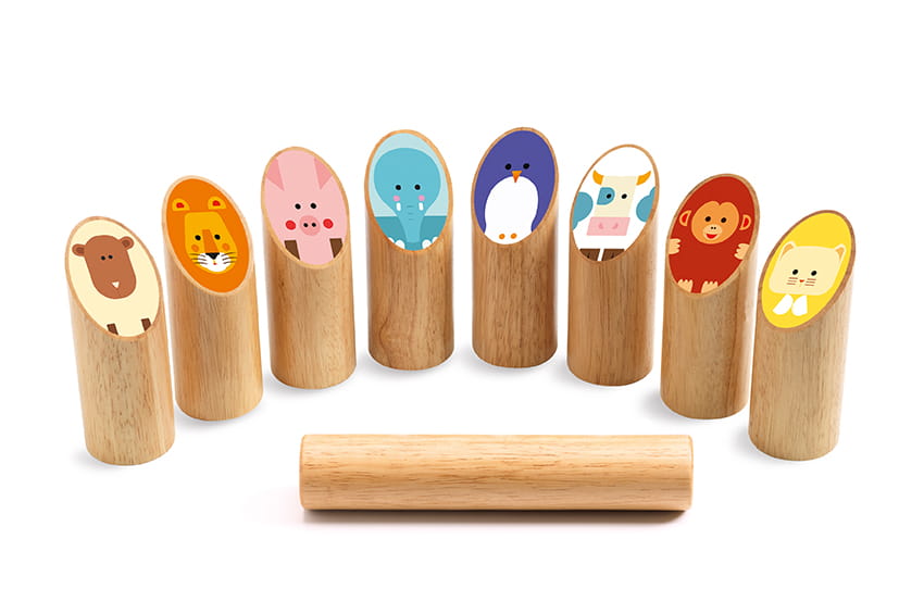 Gra w nordyckie kręgle została specjalnie przystosowana dla najmłodszych graczy - z rysunkami, dopasowaną wielkością kijka do rzucania oraz uproszczonymi zasadami.