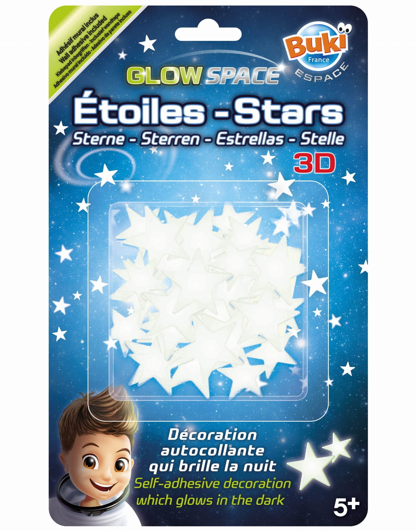 Po 1- minutowej ekspozycji na światło dzienne, świecą w ciemnościach przez 1 godzinę. Do przyklejenia na suficie lub ścianie służy dołączona taśma dwustronna.