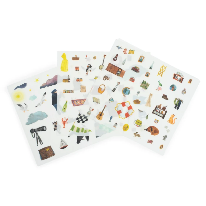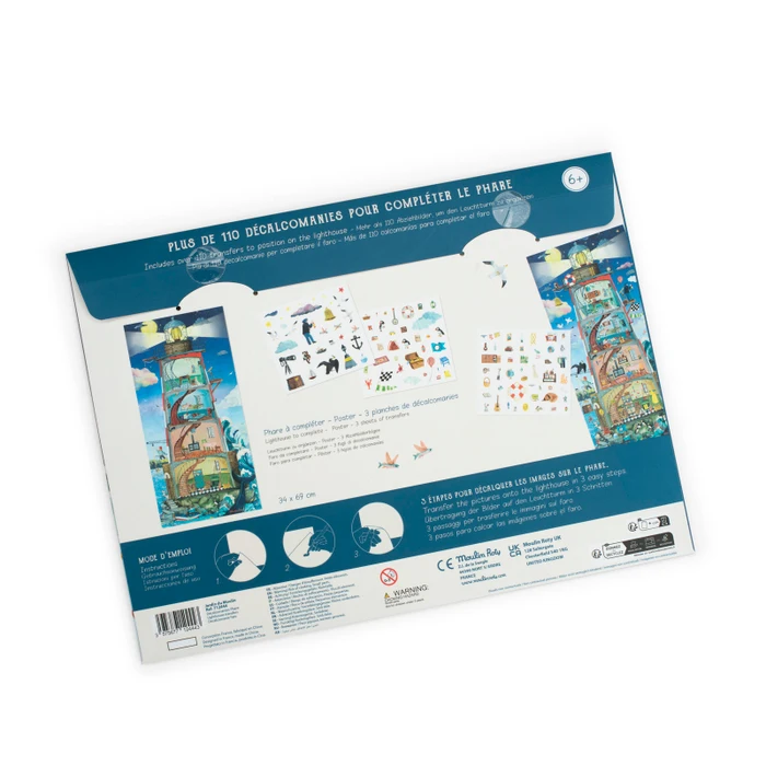 Plakat przedstawiający latarnię morską w przekroju czeka na ozdobienie za pomocą kalkomanii. Wystarczy wybrać rysunek z arkusza, przyłożyć w wybrane miejsce, zamalować ołówkiem i gotowe! Dany obiekt znalazł swoje miejsce w latarni. W zestawie znajdują się 3 arkusze z ilustracjami zwierząt, przydatnych przedmiotów takich jak latarka lub globus, mebli czy elementów nieba.
