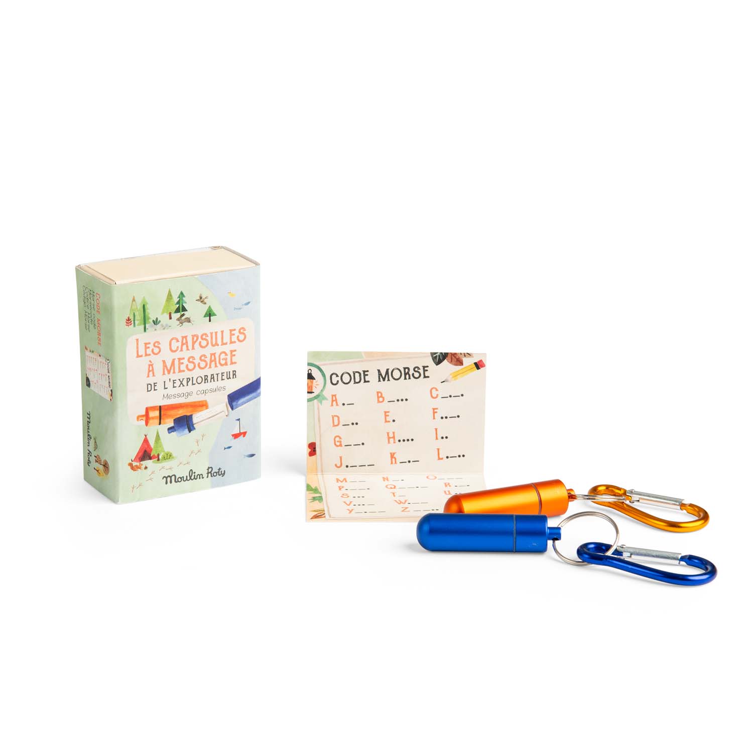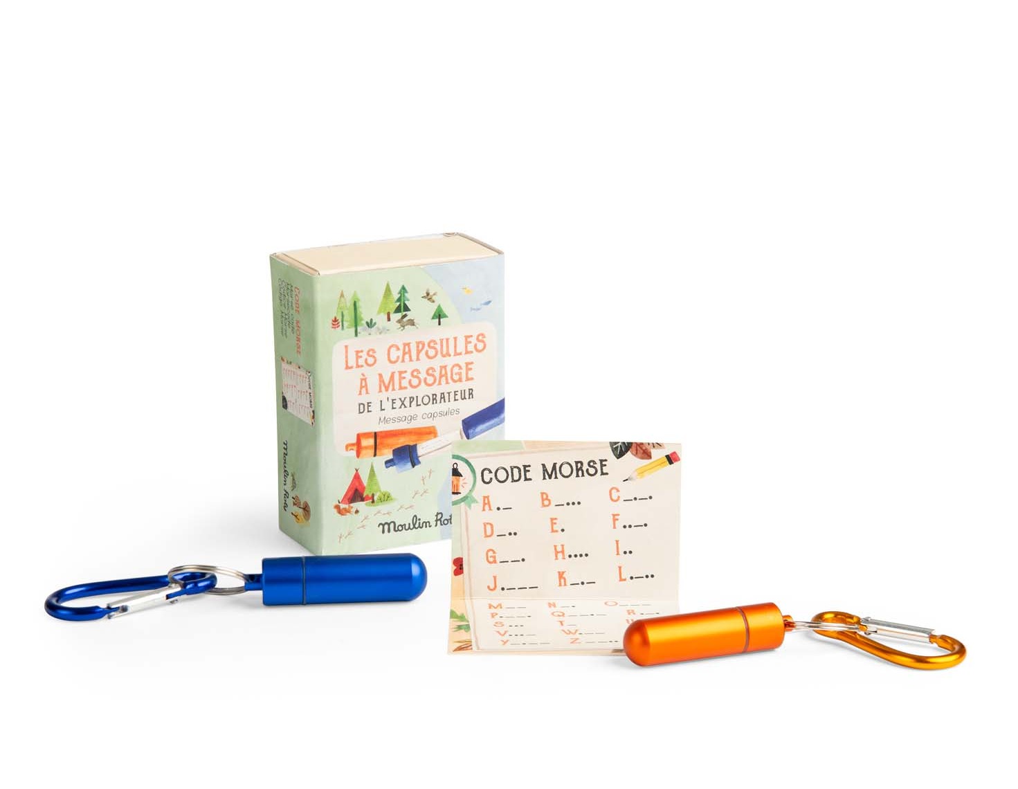 du Moulin. Zestaw zawiera alfabet Morse'a i dwie hermetyczne kapsułki z