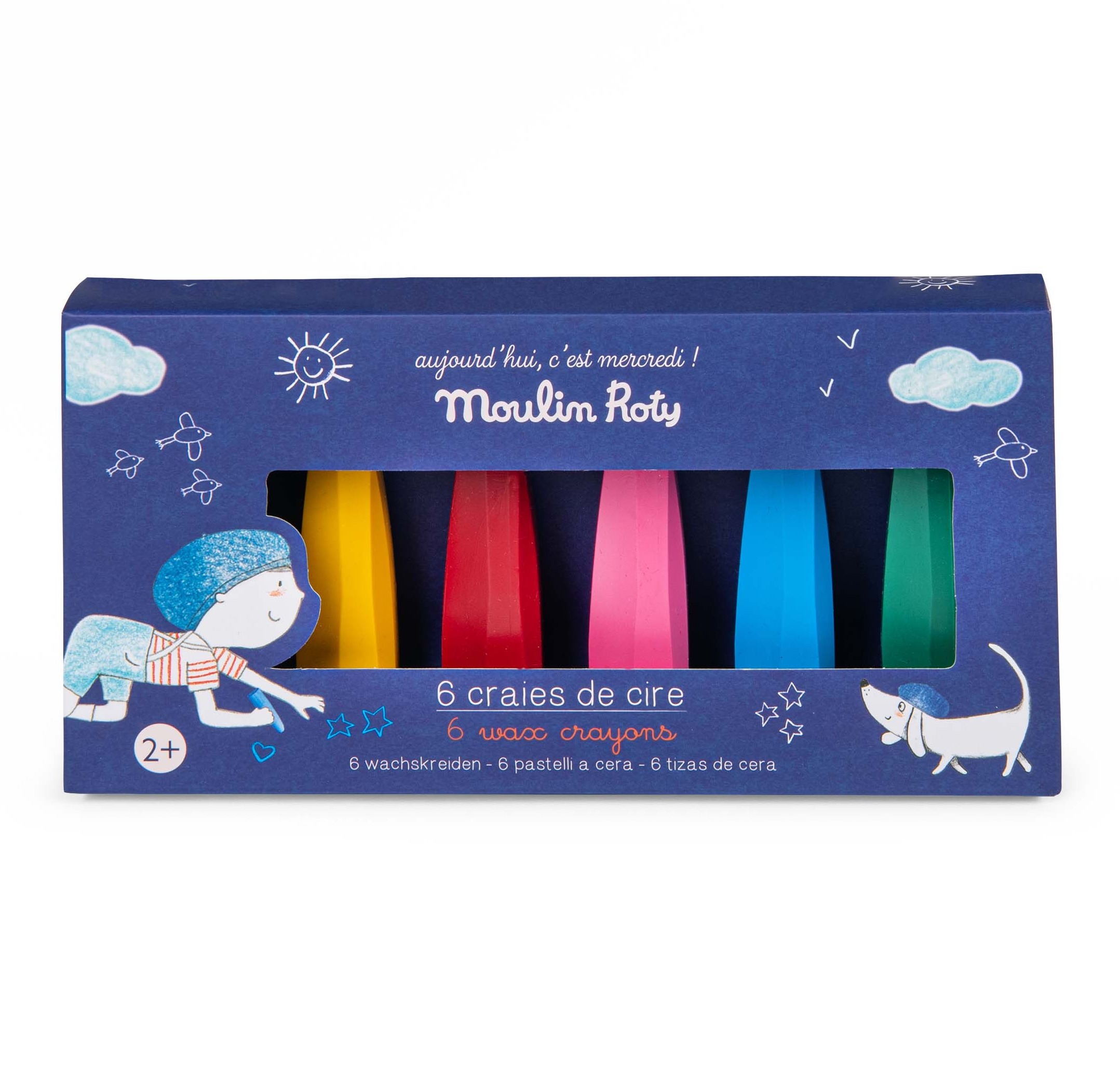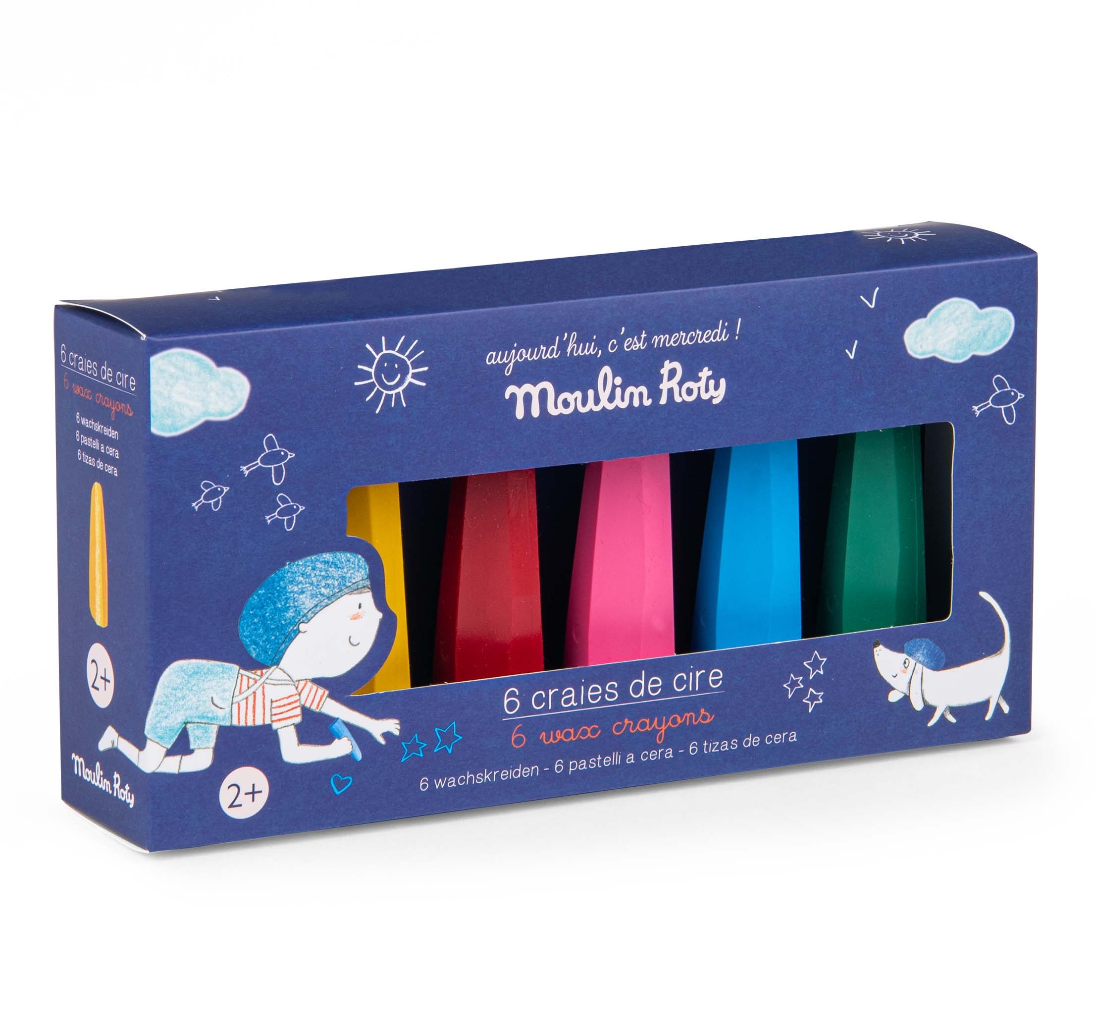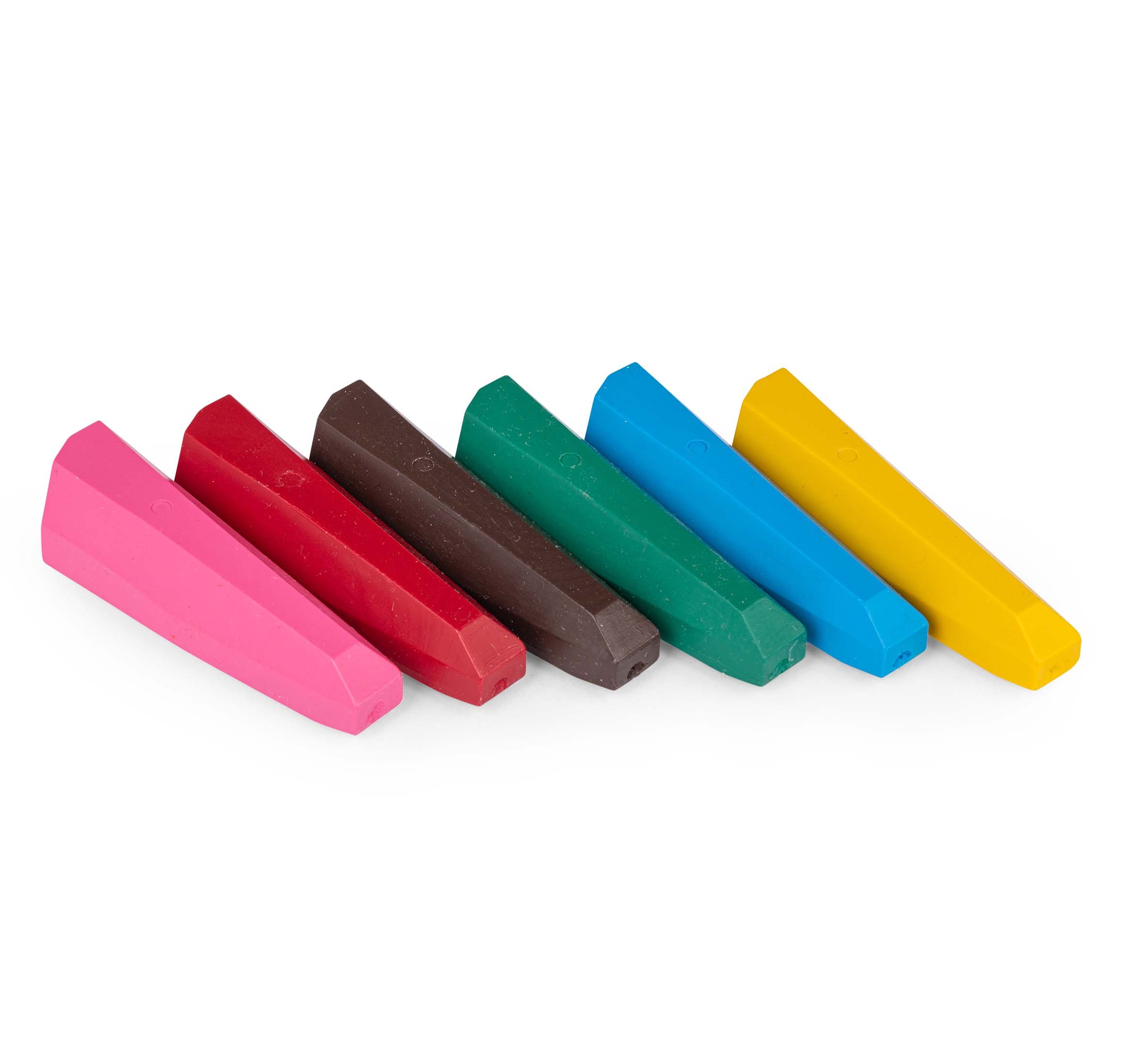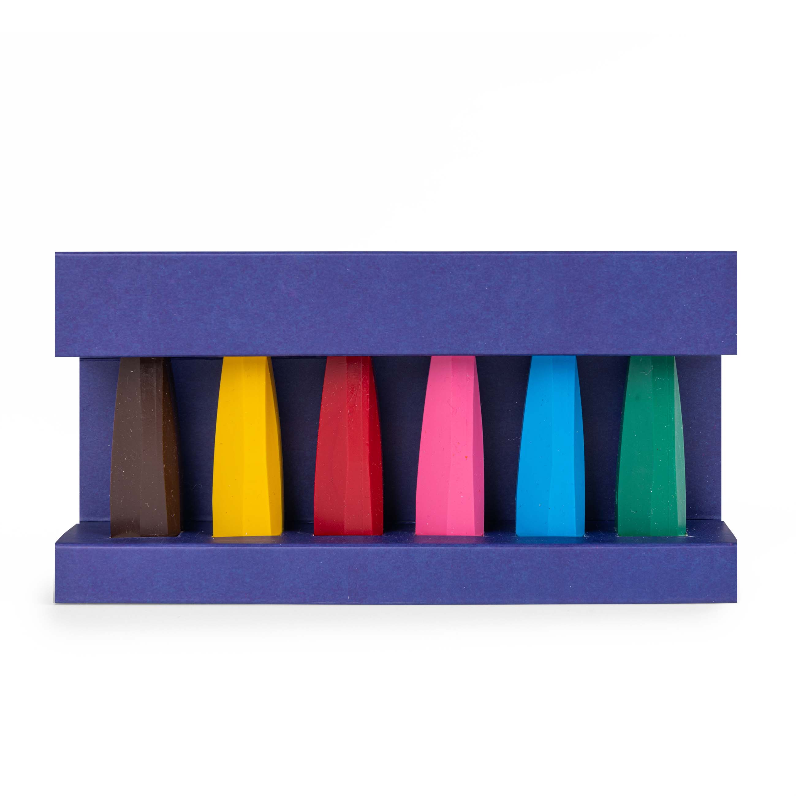 Kredki o nietypowym kształcie dla małych artystów od 2. roku życia. Stożkowaty kształt ułatwia chwycenie kredki przez małe rączki dziecka. Idealny trening dla dłoni. Kredki wykonane są z wosku pszczelego. Nie brudzą rąk i są łatwo zmywalne. W zestawie dostępne jest 6 kolorów: żółty, różowy, czerwony, zielony, niebieski i brązowy. Zapakowane w ozdobne pudełko z okienkiem.