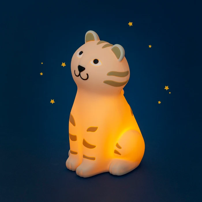 Urocza lampka w kształcie tygryska z kolekcji La Foret Mawa zapewni spokojny sen każdemu maluszkowi. Wykonana z miękkiego silikonu, wolnego od BPA. Wydziela delikatne i kojące światło w nocy (o 3 stopniach intensywności), a w dzień stanowi piękną ozdobę dziecięcego pokoju. Ładowana na kabel USB, dołączony do zestawu. Posiada wymienialny moduł LED. Można czyścić miękką i wilgotną ściereczką.