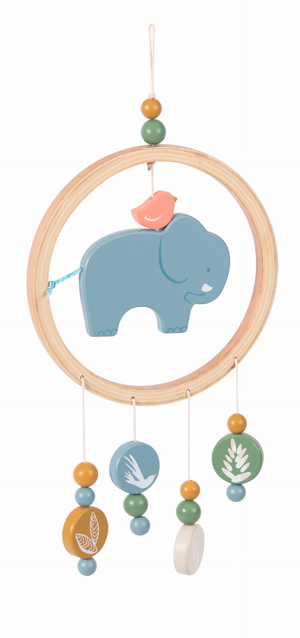 Łapacz snów Słoń z kolekcji Sous Mon Baobab francuskiej firmy Moulin Roty. Idealna ozdoba dla dziecięcego pokoju.