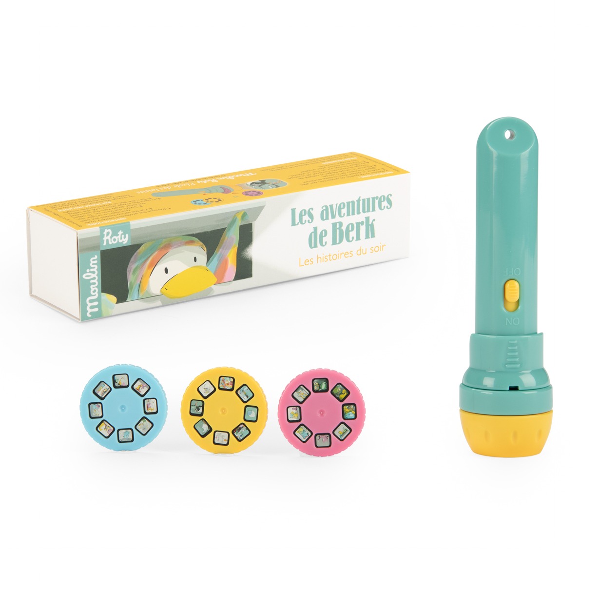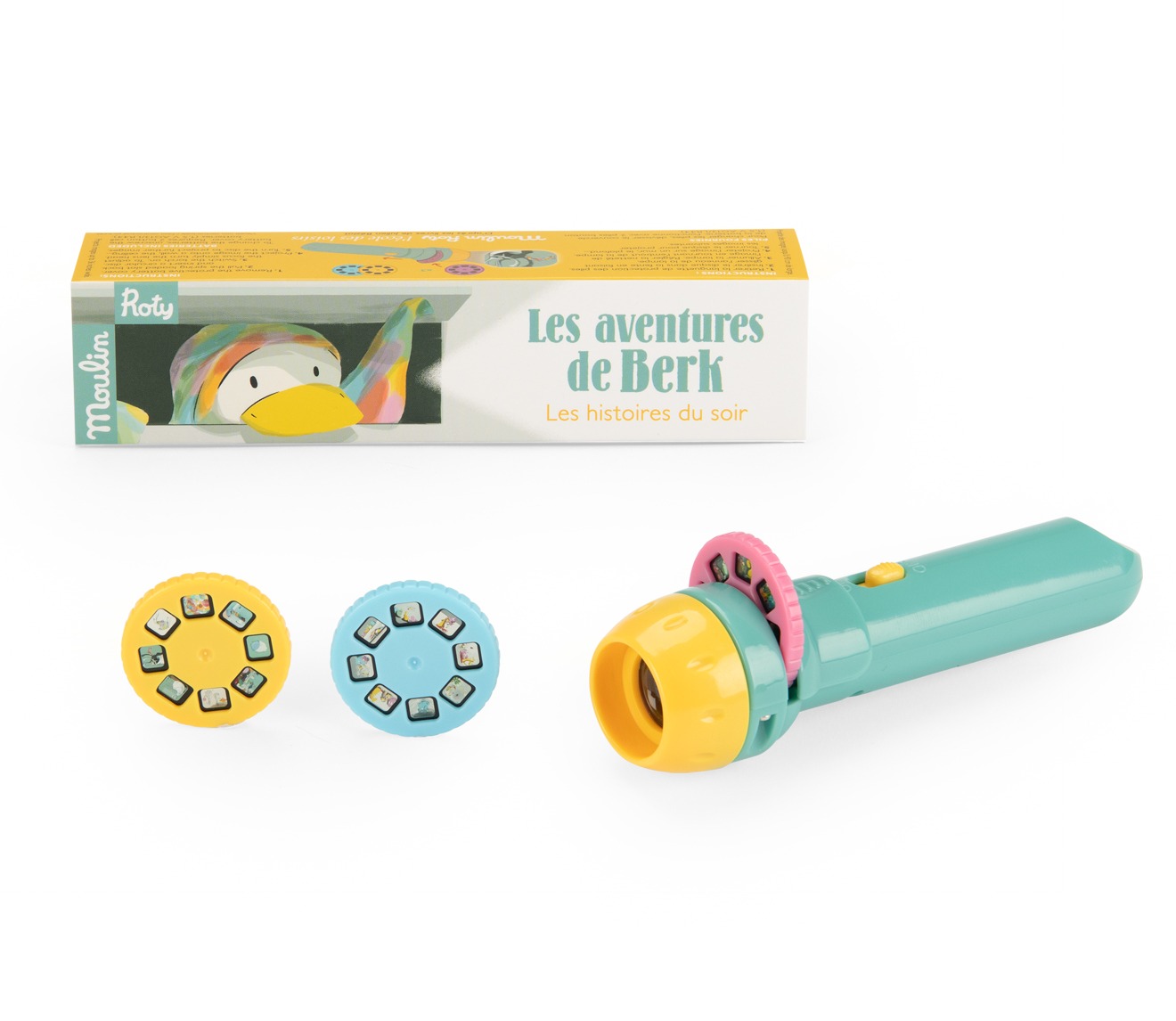 Latarka projektor przedstawia historię Berka na trzech dołączonych do zestawu krążków z bajkami. Pokaz slajdów wieczorową porą to doskonała alternatywa dla wieczornego czytania i sposób na wartościowe chwile z rodziną.