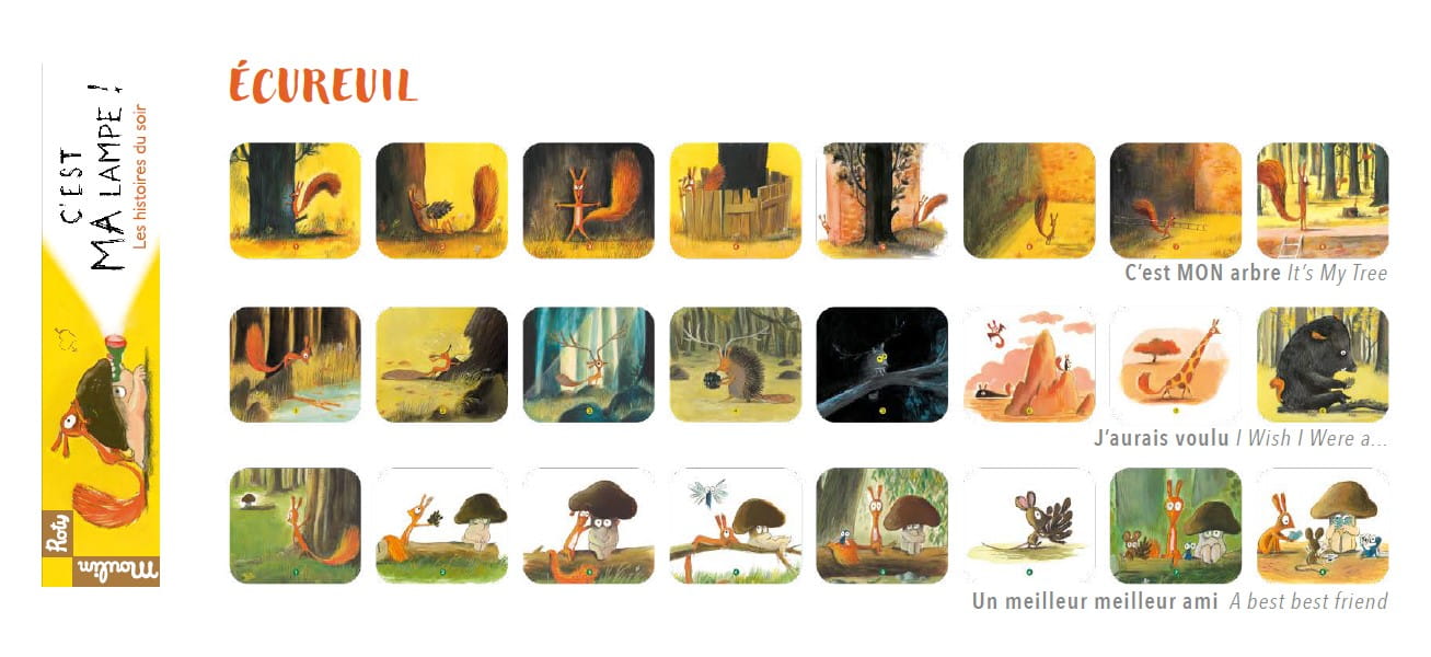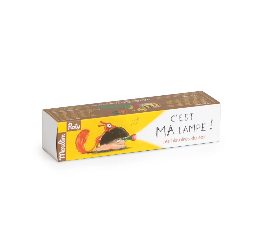 Latarka projektor francuskiej marki Moulin Roty. W zestawie znajdują się 3