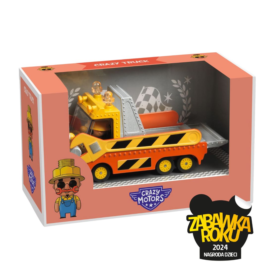 Wypadek na trasie wyścigu? Kolizja w wąskiej miejskiej uliczce? Bez obaw! Laweta Crazy Truck już jedzie na pomoc wszystkim samochodzikom z kolekcji Crazy Motors. Gdy zachodzi potrzeba, opuszcza swoją platformę i zaprowadza pechowe autko do najbliższego warsztatu, a w szalonym wyścigu Crazy Motors nietrudno o wypadek. Laweta jest wykonana z metalu i pojedynczych plastikowych części, które nadają unikatowego wyglądu. Posiada metalowe zawieszenie oraz gumoweopony. Jest pomalowana metaliczną farbą.