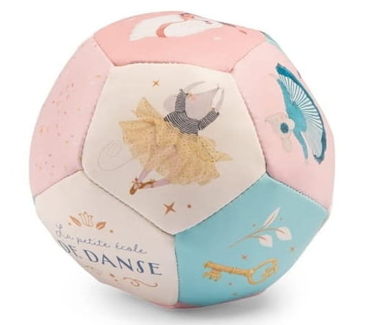 Kolekcja Mała Szkoła Tańca prezentuje miękką piłeczkę do zabawy dla dzieci od 12. miesiąca życia. Przepięknie ilustrowana postaciami m.in myszek baletnic, bez problemu przyciągnie uwagę maluszka. Pastelowe kolory tła doskonale komponują się z delikatnymi rysunkami. Wielkość piłeczki (średnica 10 cm) idealnie pasuje do dziecięcych rączek. Można czyścić wilgotną ściereczką.
