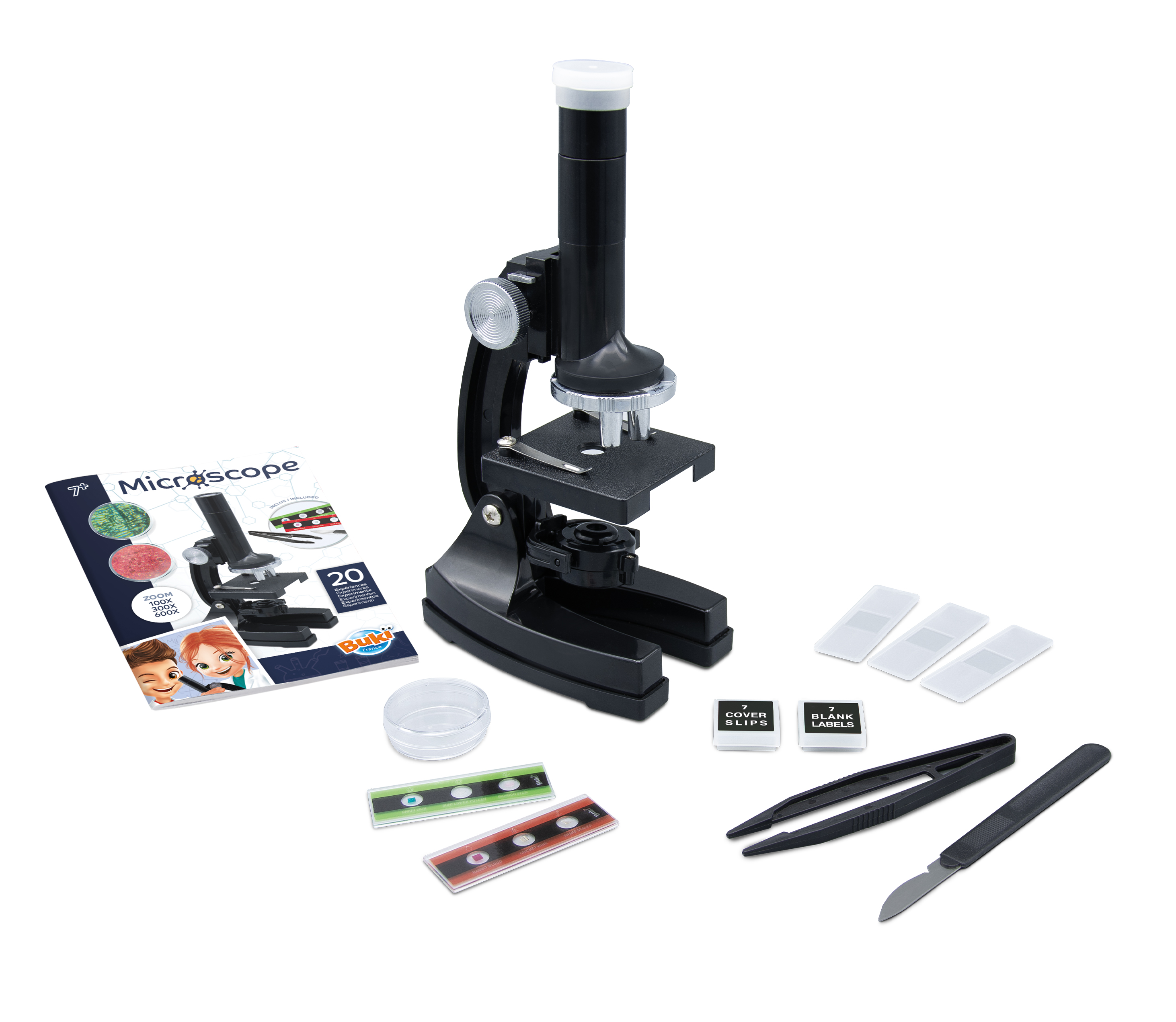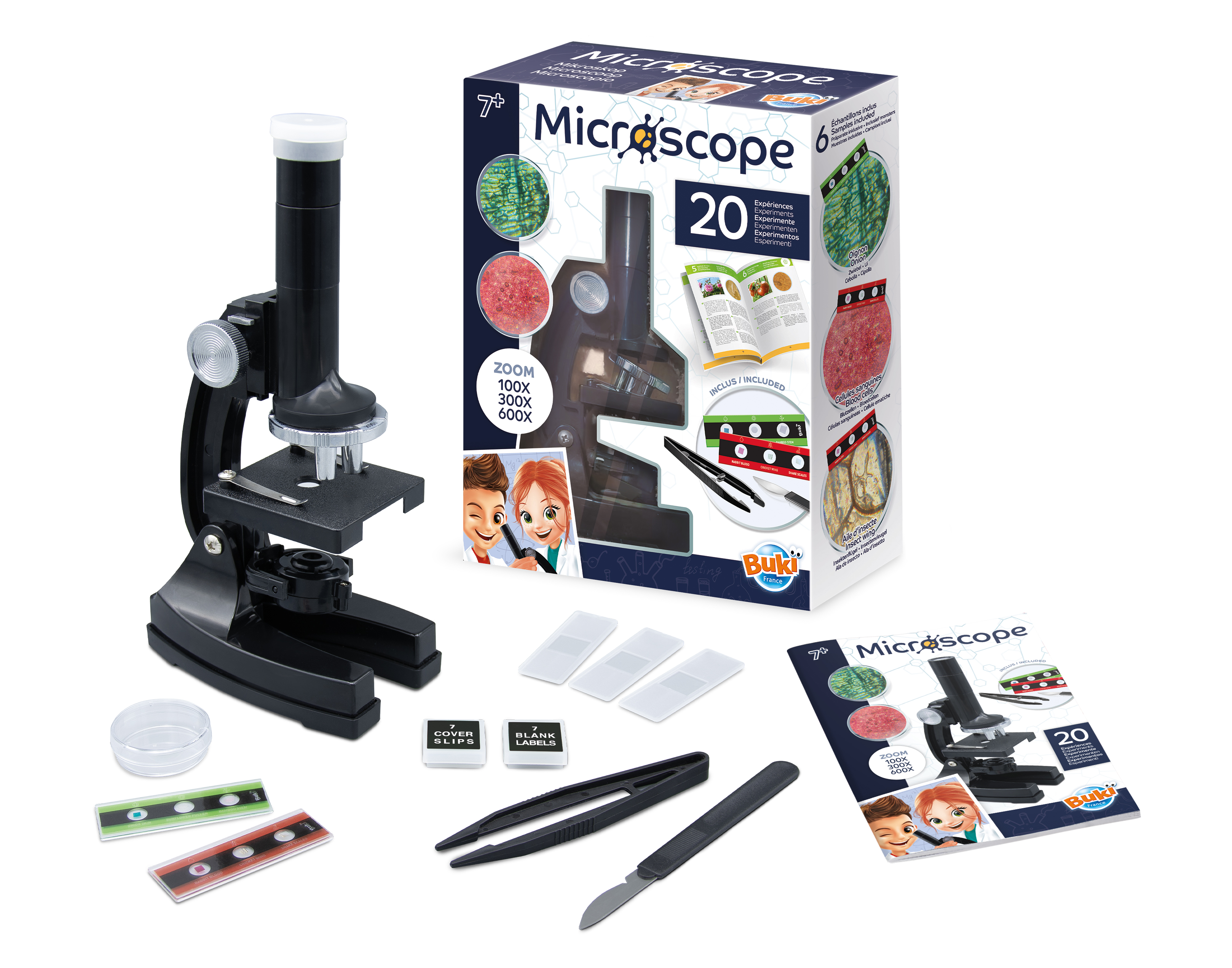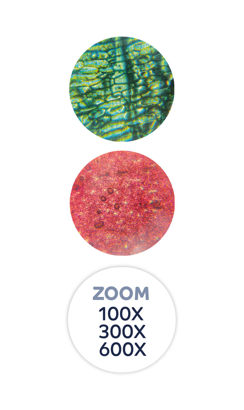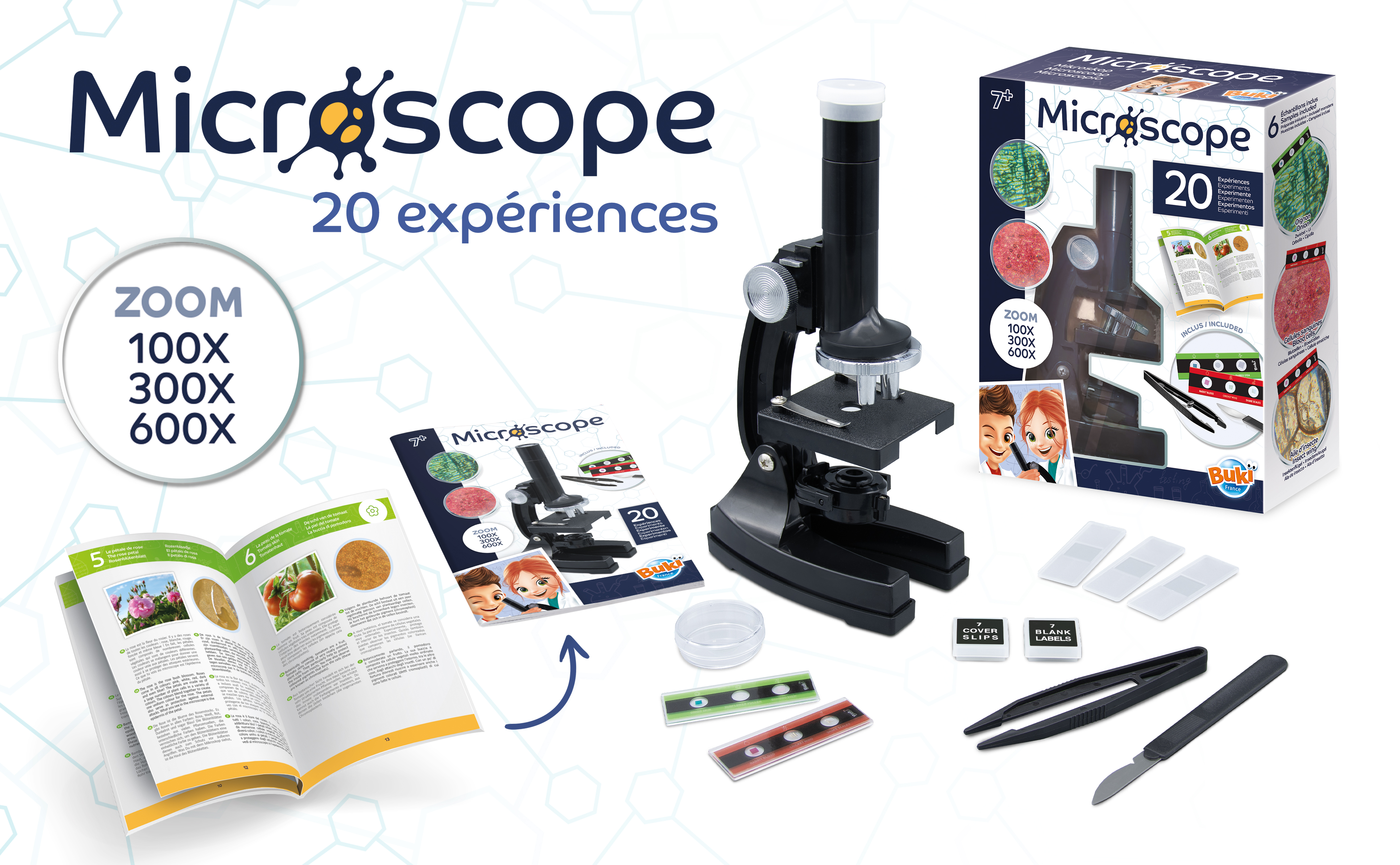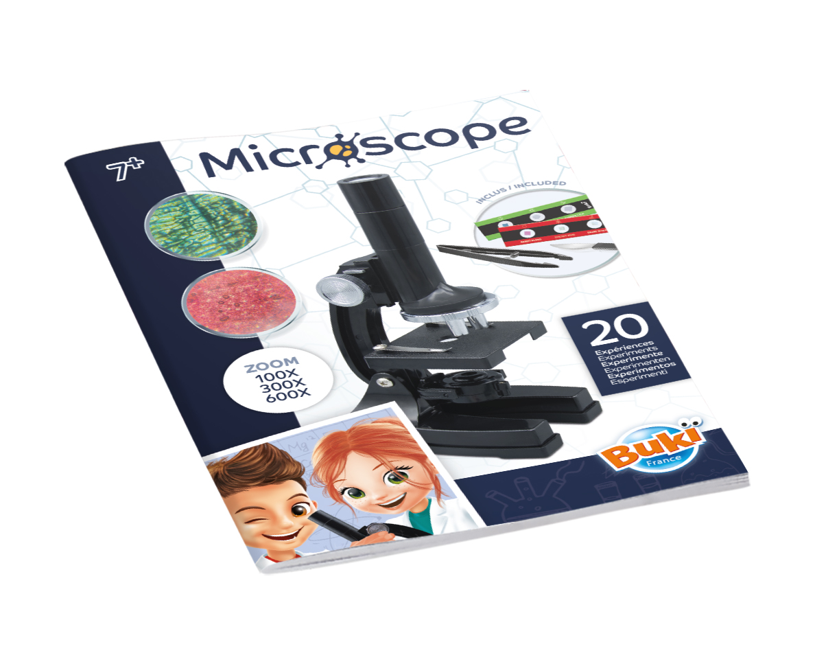 Mikroskop do przeprowadzenia 20 doświadczeń, idealny dla początkujących obserwatorów. Każda aktywność pozwala odkryć tajemnice świata detali niewidocznych gołym okiem.