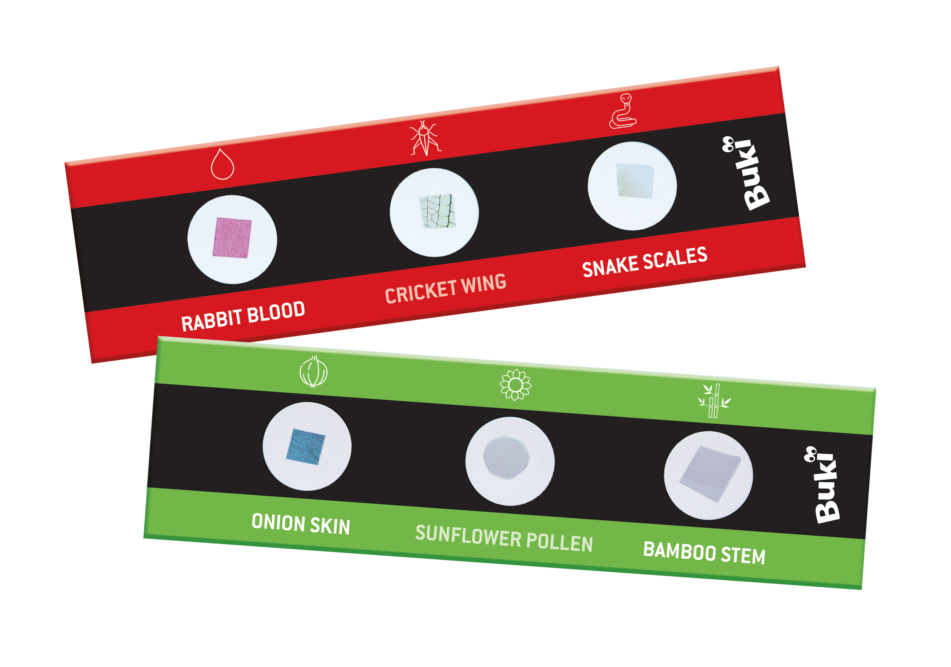 Zestaw zawiera gotowe próbki do obserwacji: cebuli, pyłku kwiatowego, skrzydła owada i komórek krwi.