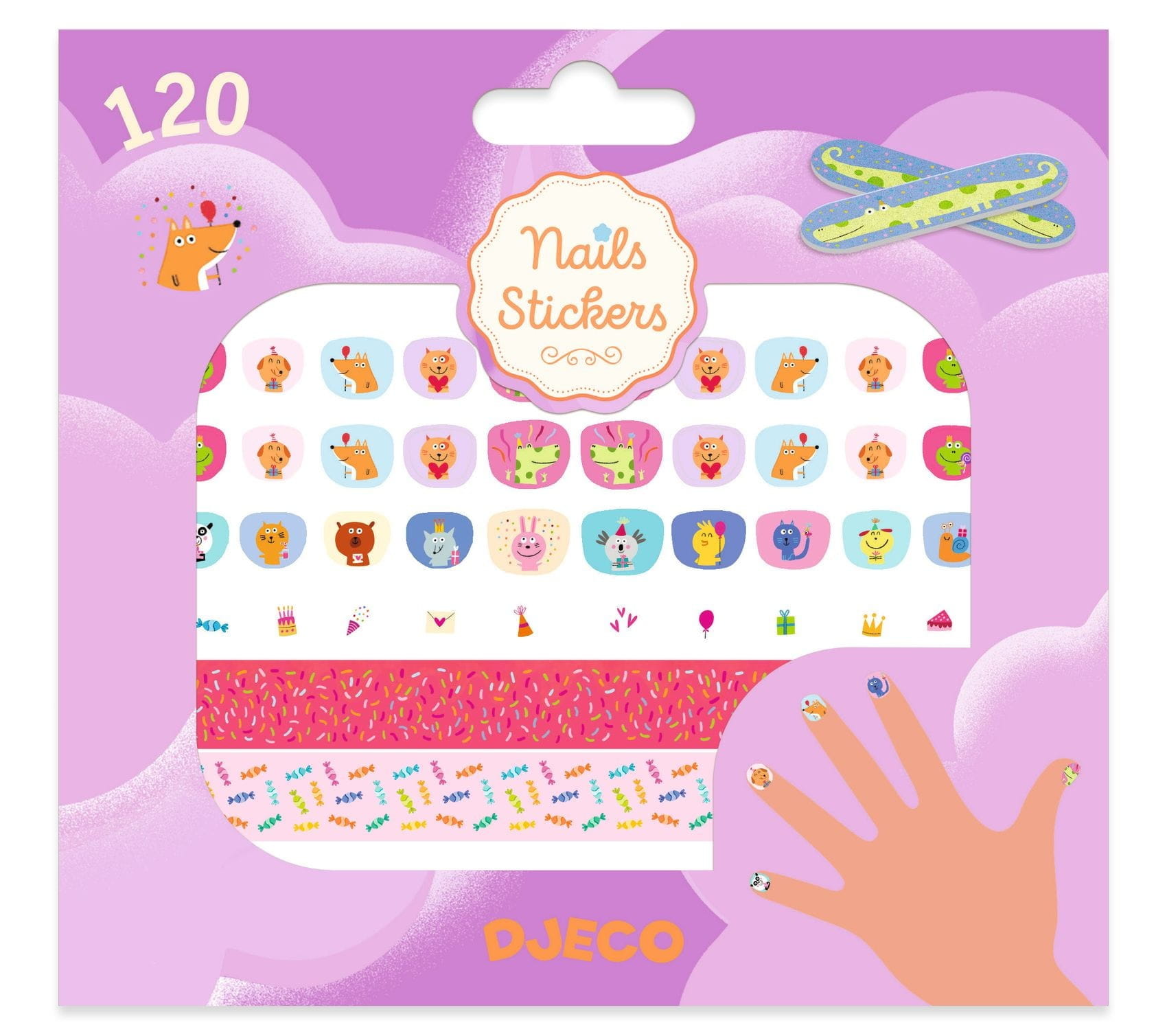 Superszybki manicure dla najmłodszych! Zestaw naklejek na paznokcie, które są łatwe zarówno w nakładaniu jak i zdejmowaniu. Od najmniejszych pasujących na mały palec do największych na kciuk. Do zabawy nie potrzeba lakieru do paznokci lub zmywacza. Wystarczy wybrać odpowiednią naklejkę, nakleić na paznokieć, docisnąć lub dopasować załączonym pilniczkiem i gotowe! Można też stworzyć własne naklejki z dostępnych pasków ze wzorami. Wystarczy wyciąć odpowiedni kształt i nakleić na paznokcie. Naklejki są wodoodporne. W zestawie znajdują się 2 pilniczki. Manicure wytrzymuje średnio około tygodnia czasu.