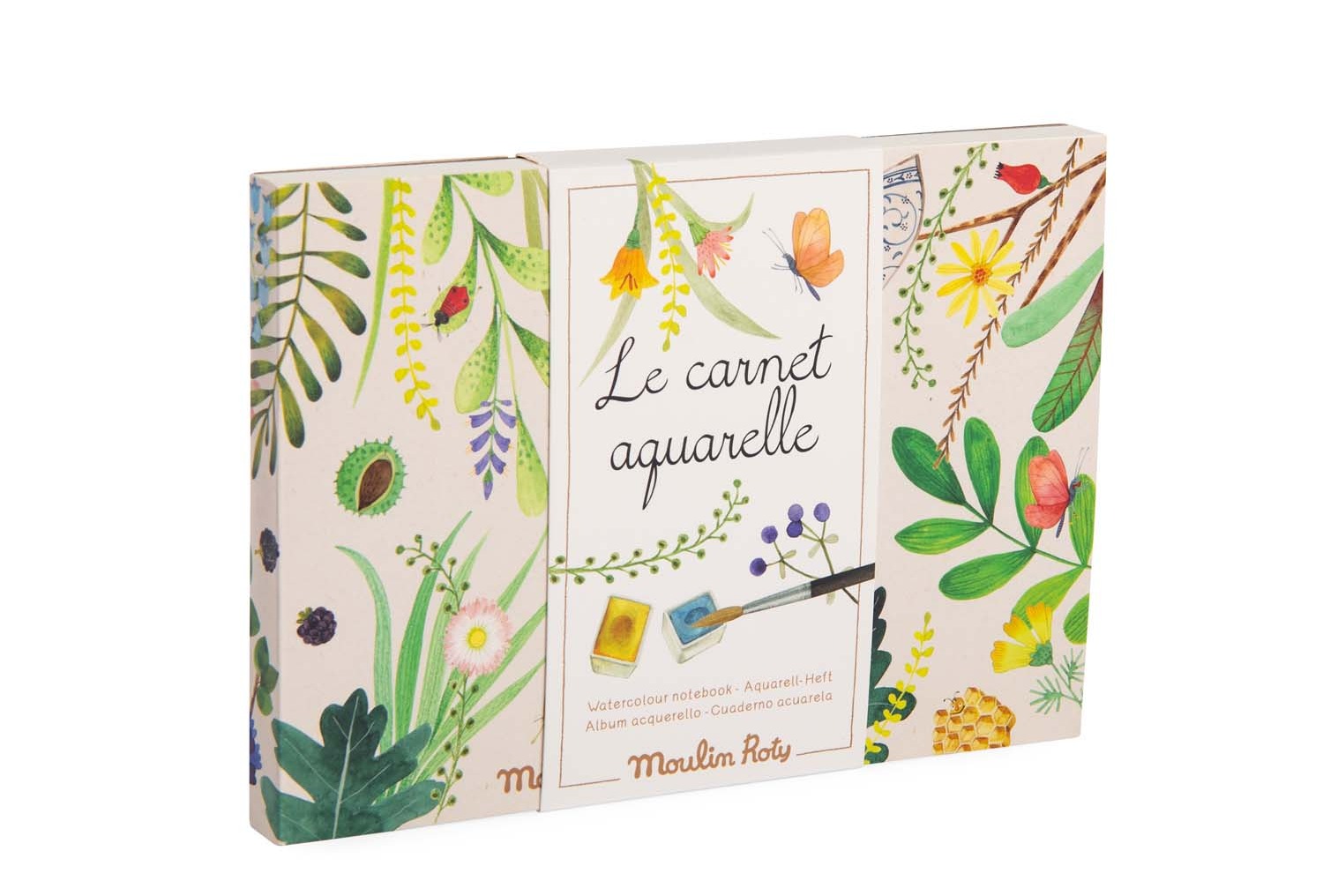 Przepiękny szkicownik do malowania akwarelami. Posiada grube kartki, idealne dla początkujących malarzy. Okładka jest zdobiona grafiką pochodzącą z kolekcji Le Jardin du Moulin.