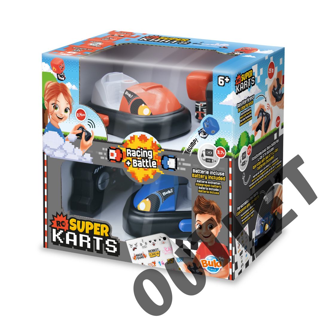 Gokarty są sterowane dwoma pilotami 2,4 GHz. Wymagane 4 baterie AA. Zasięg 25 metrów.