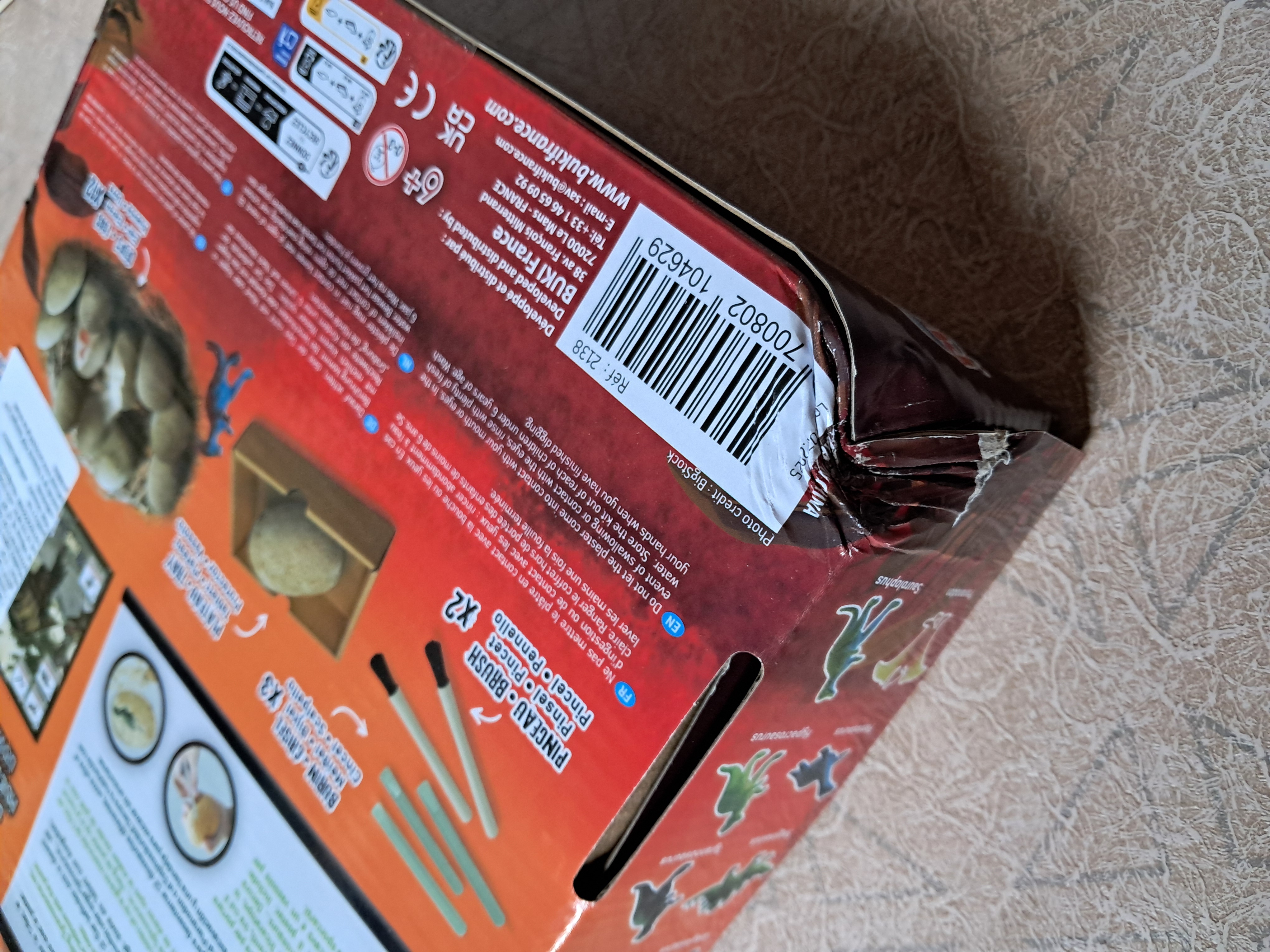 Użyj pędzelka, aby oczyścić dinozaura z pozostałości gipsu i opłucz w czystej wodzie.