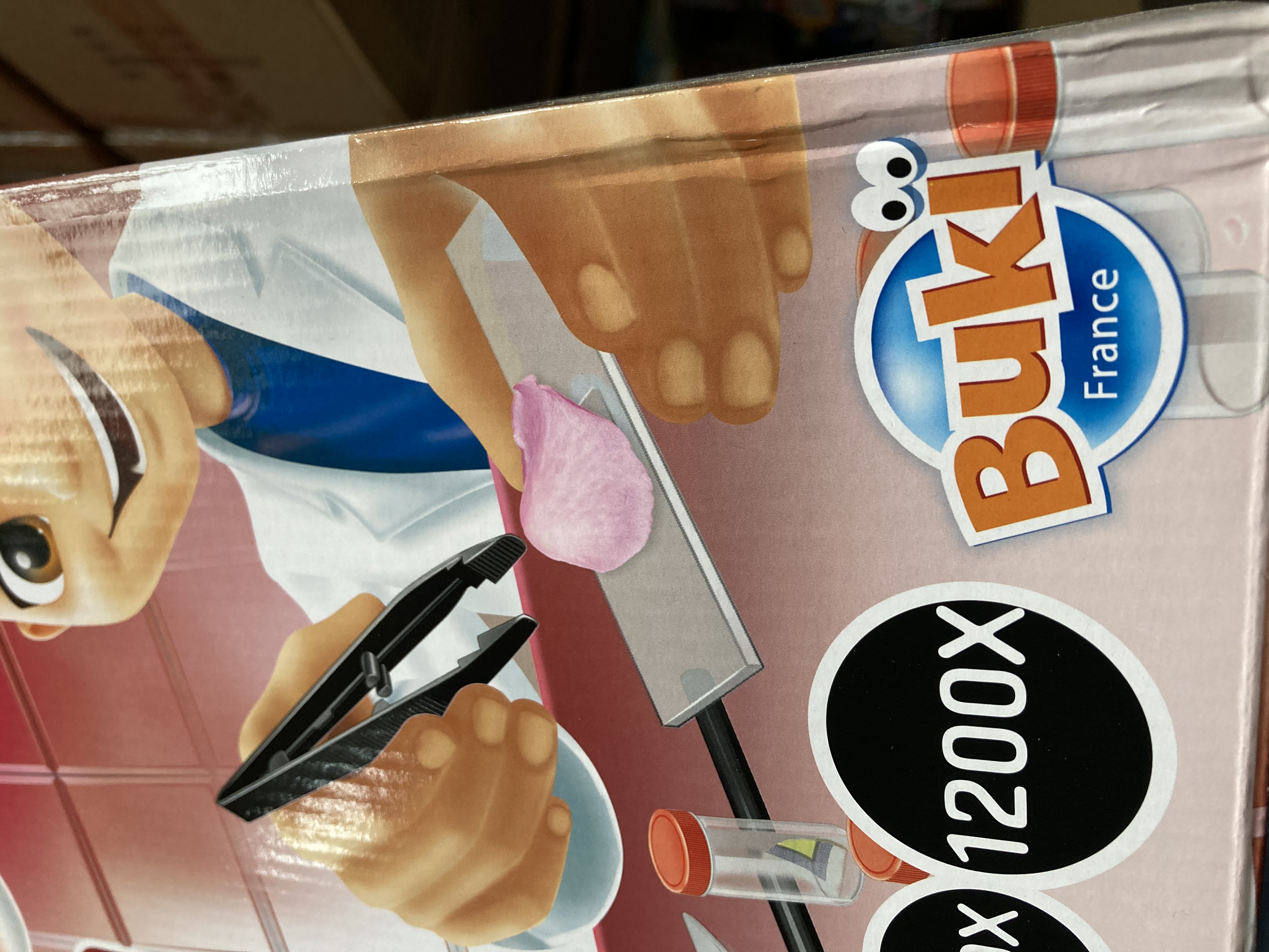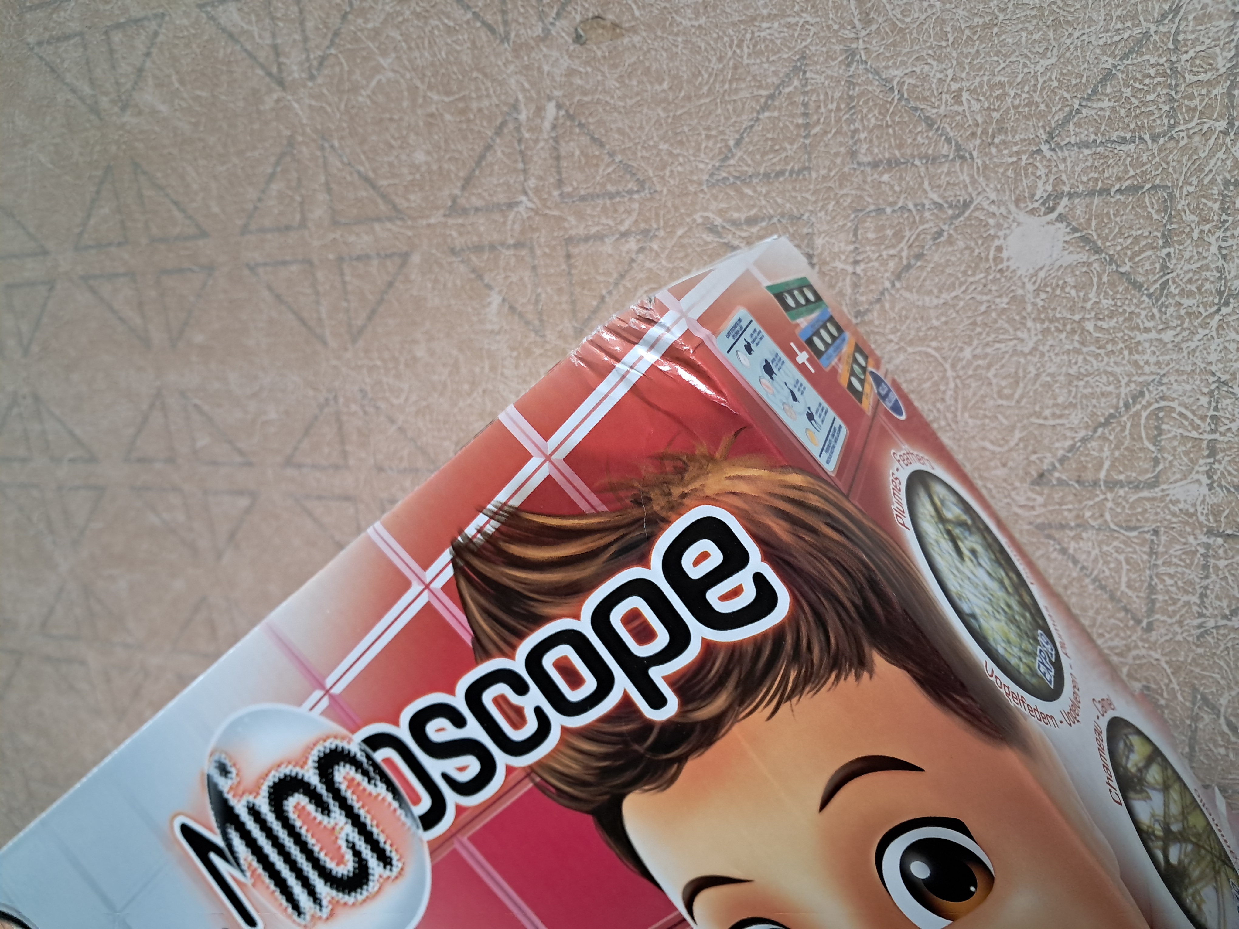 Mikroskop o wysokości 23 cm. z soczewkami, kolorowymi filtrami oraz 3