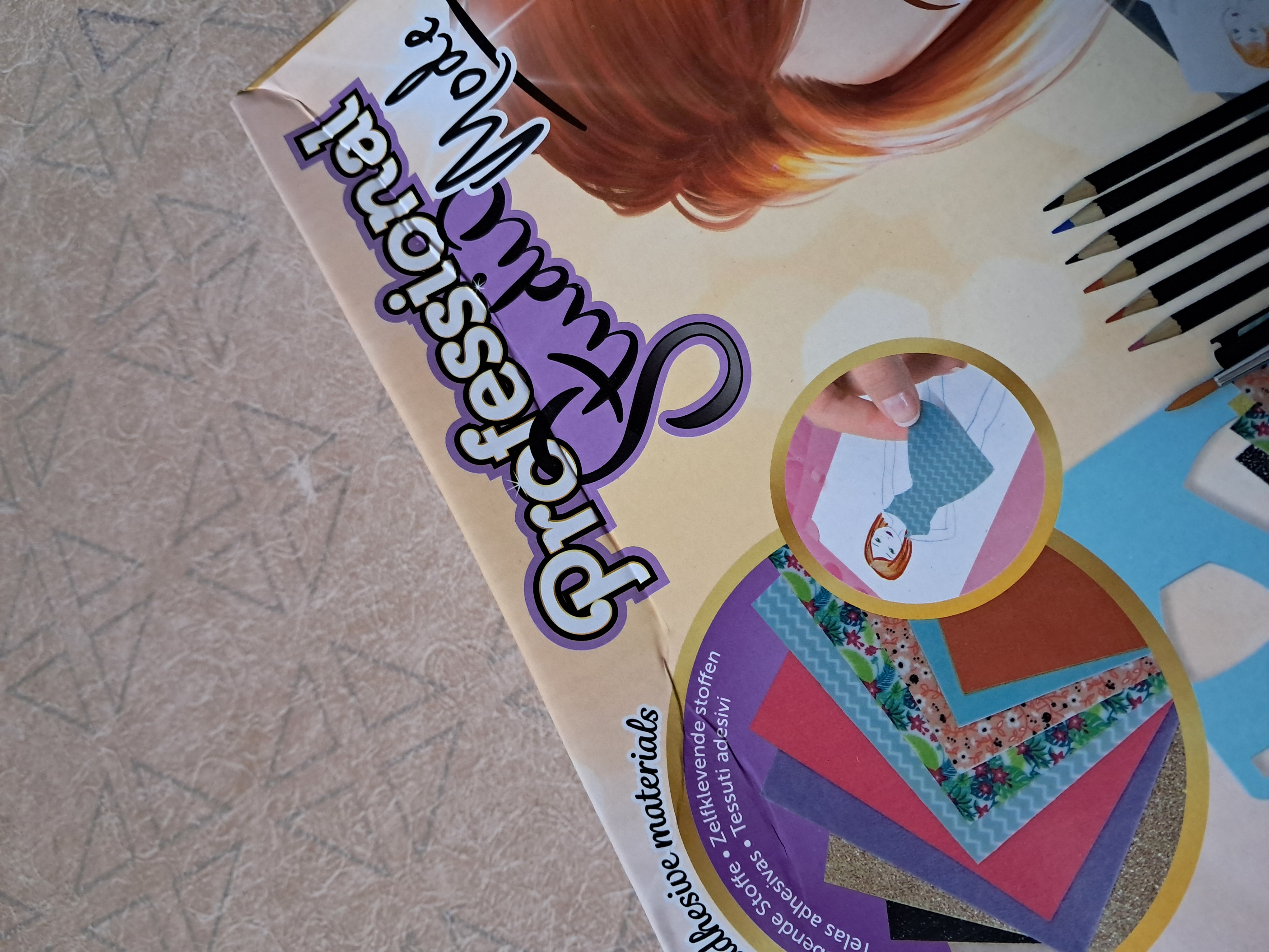 dodatkom. Kolorowe samoprzylepne tkaniny, pióra, cekiny, filc, wstążki, kredki