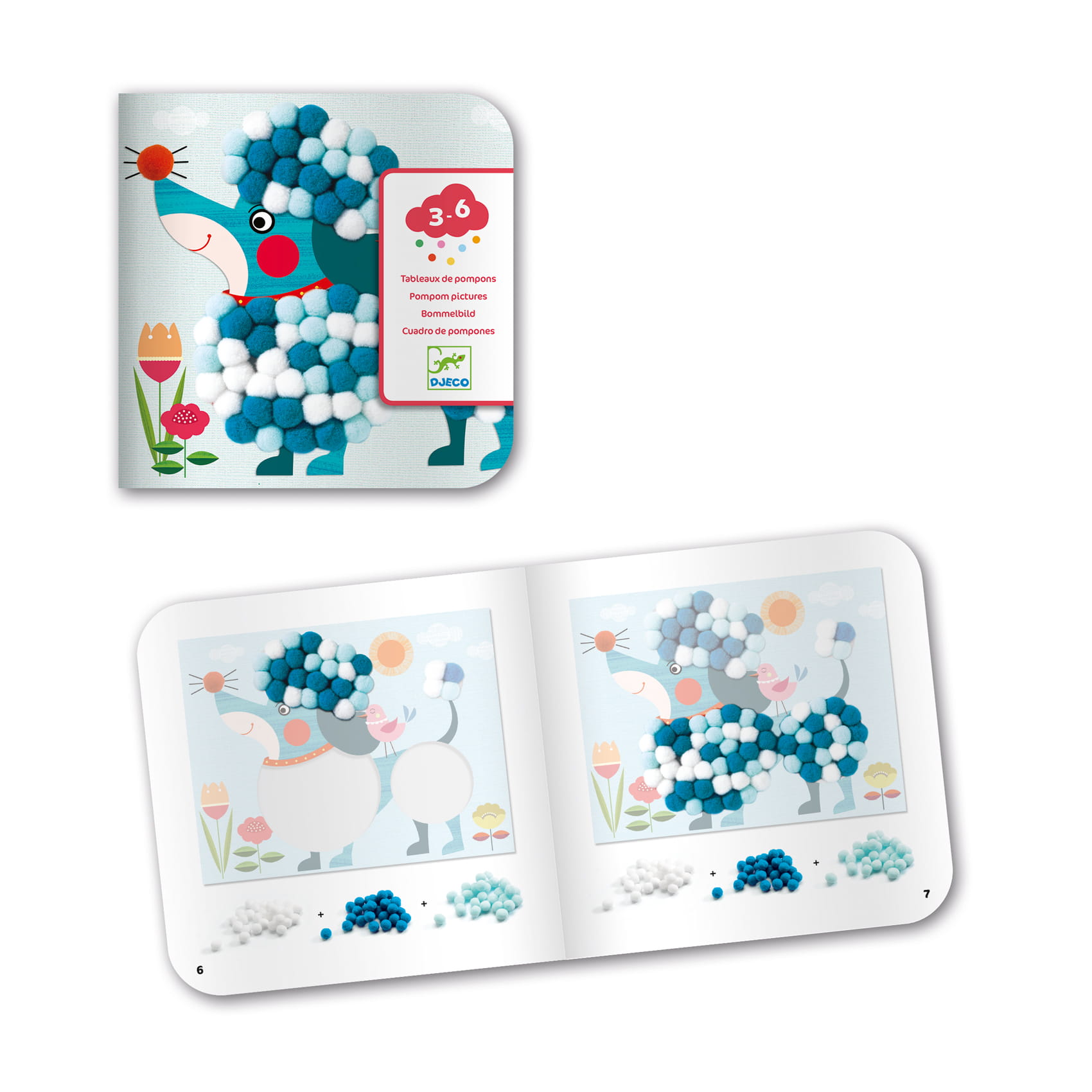 Wyjątkowy zestaw, dzięki któremu maluch będzie mógł ozdobić obrazki ze zwierzątkami za pomocą filcowych pomponików. Podczas zabawy dziecko rozwija swój talent plastyczny, ćwiczy motorykę małej dłoni oraz rozwija koordynację wzrokowo-ruchową. Ozdobione małymi, kolorowymi kulkami psy wyglądają uroczo i bardzo elegancko.