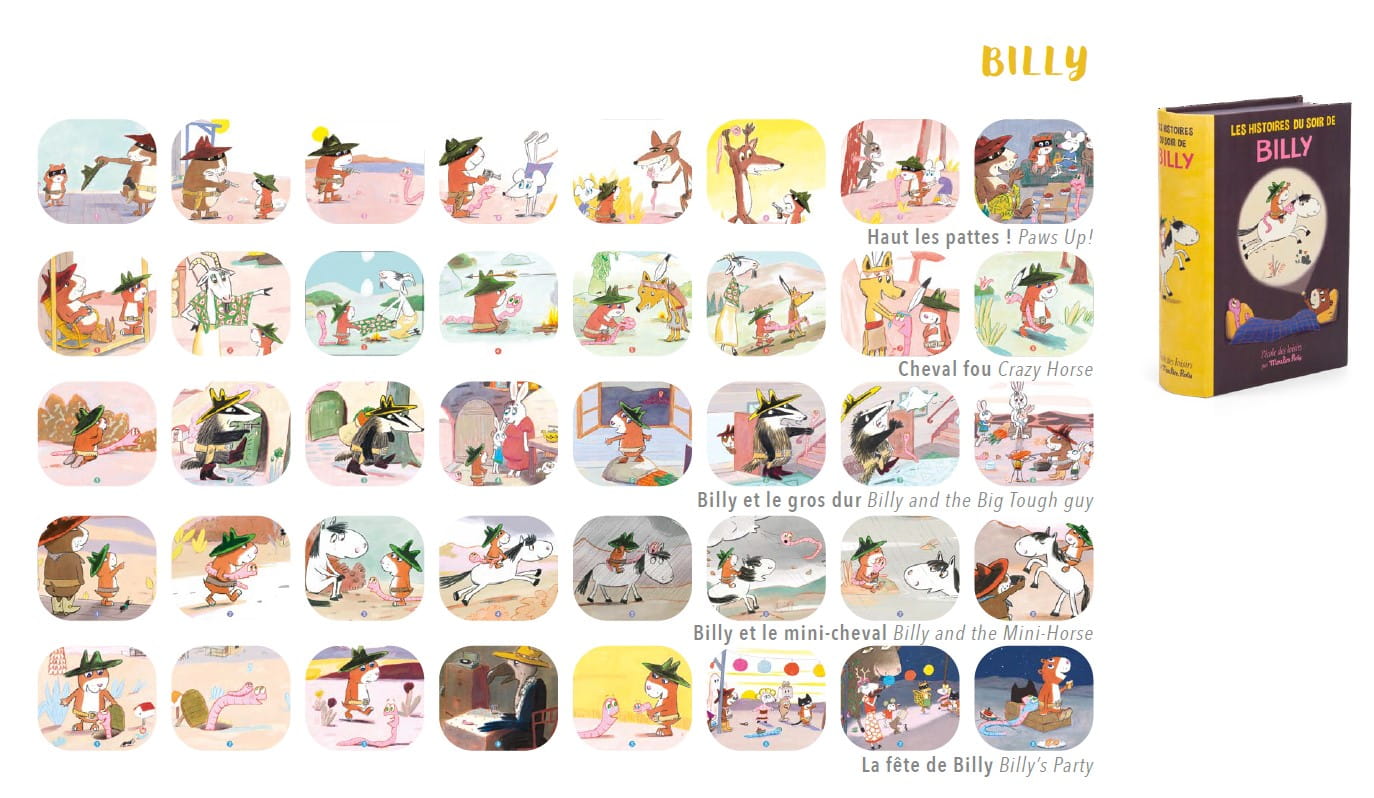 Tytuły bajek w zestawie: Łapy do góry!, Szalony koń, Billy i Twardziel, Billy i Mini-Konik, Przyjęcie Billy'ego