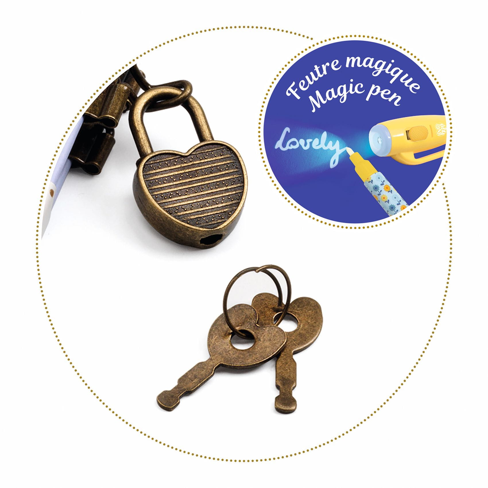 Twoje tajemnice będą teraz podwójnie strzeżone. Sekretny pamiętnik w twardej oprawie jest zamykany na kłódkę. Do zestawu dołączony jest magiczny długopis, który pisze niewidzialnym atramentem, a sekret pojawia się dopiero w świetle UV. Latarka UV ukryta jest w skuwce pióra, baterie znajdują się w zestawie. Nawet jeśli ktoś znajdzie kluczyk do kłódki, nie będzie w stanie odczytać informacji ukrytych w notesie.