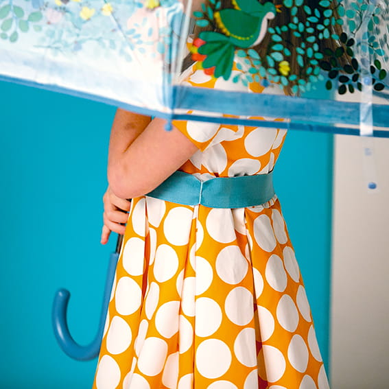 plastikowy parasol od Djeco dla dorosłych chroni przed deszczem i pozwala