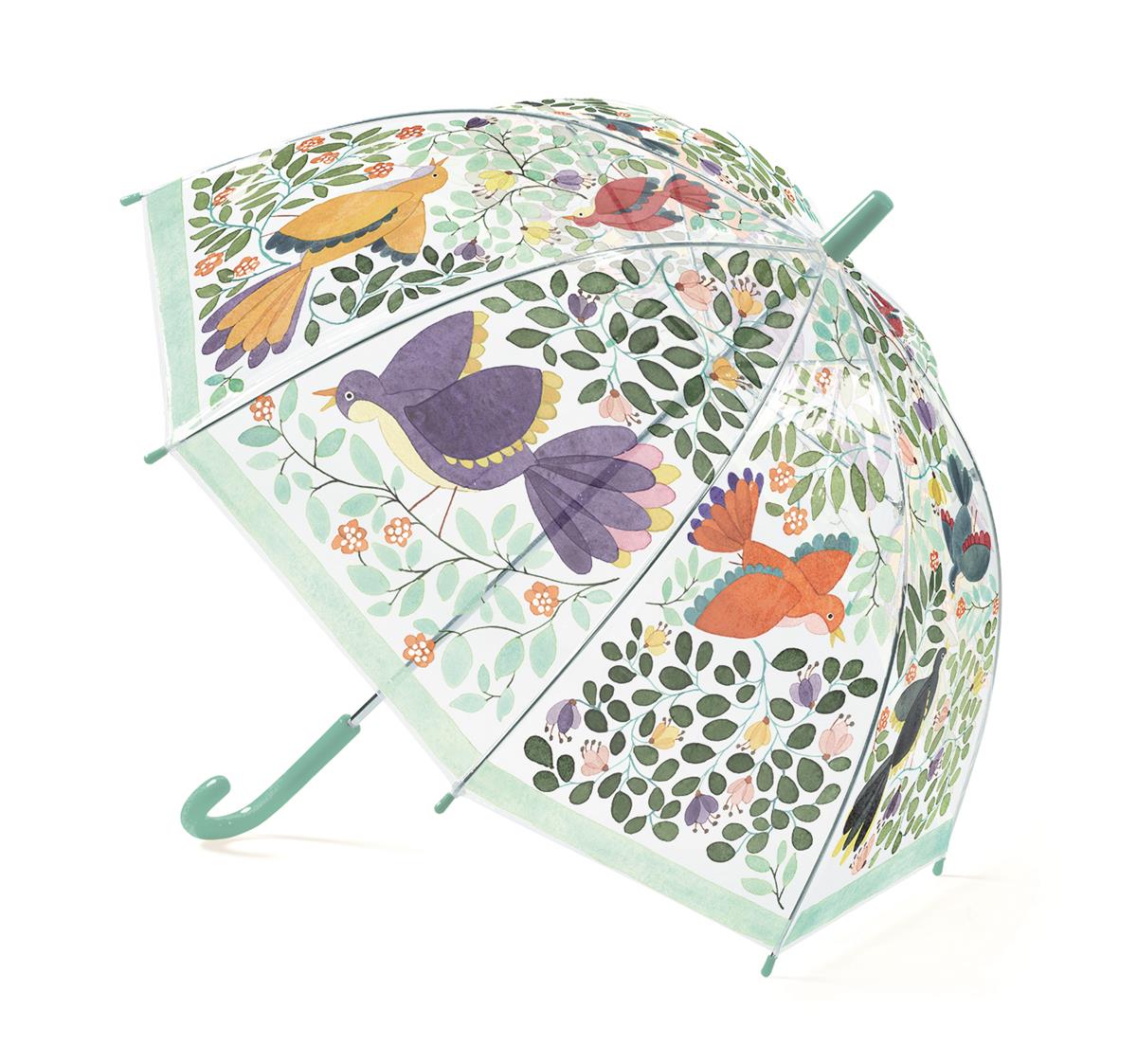 plastikowy parasol od Djeco chroni przed deszczem i pozwala zobaczyć, dokąd