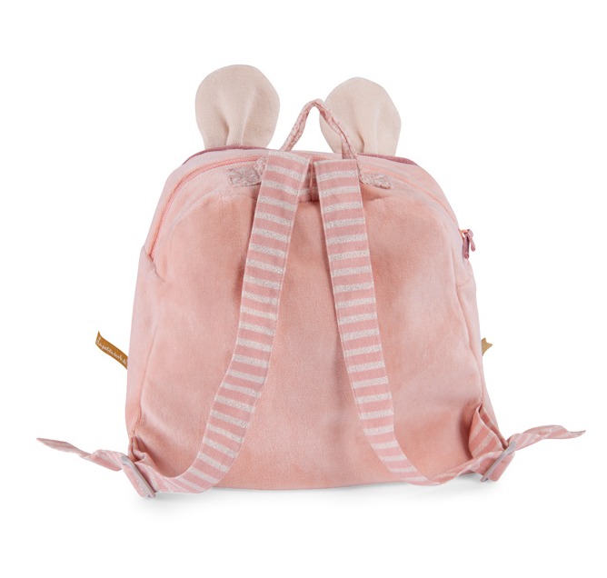 Miękki, pudroworóżowy plecak frotte z motywem myszki z kolekcji Mała Szkoła