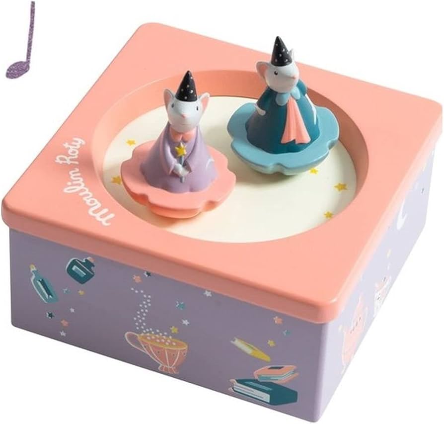 Drewniana pozytywka z serii Dawno, dawno temu... ma formę drewnianej skrzyneczki. Pozytywkę nakręca się za pomocą metalowego uchwytu - wówczas zaczyna grać delikatna melodyjka, a 2 figurki zwierzątek umieszczone na wierzchu pozytywki zaczynają wirować wokół własnej osi. Pozytywka została wykonana w pięknych, pastelowych barwach. Idealne wyposażenie dziecięcego pokoju.