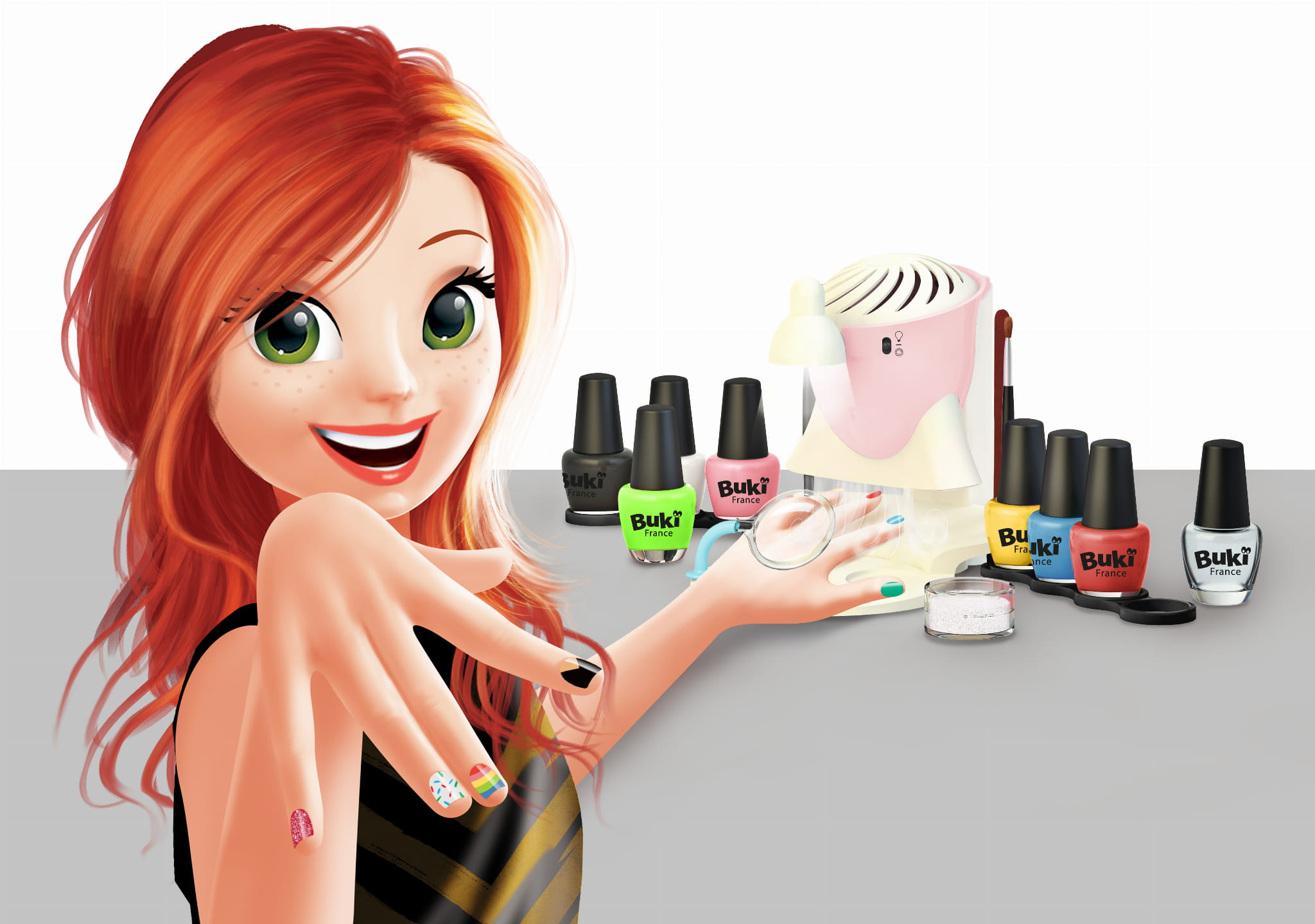 pracujesz, sekcją do szybszego suszenia paznokci oraz lupą i lampką do