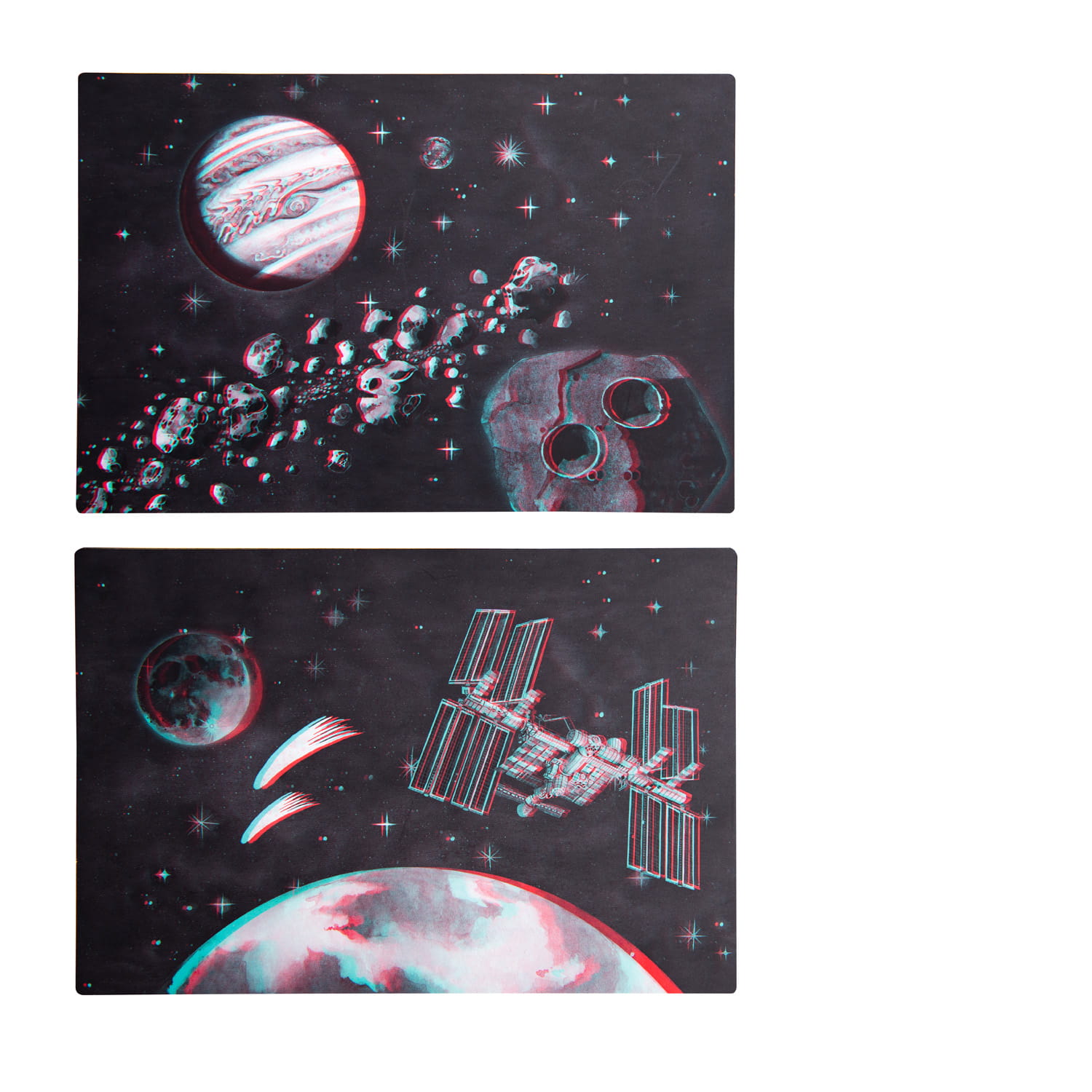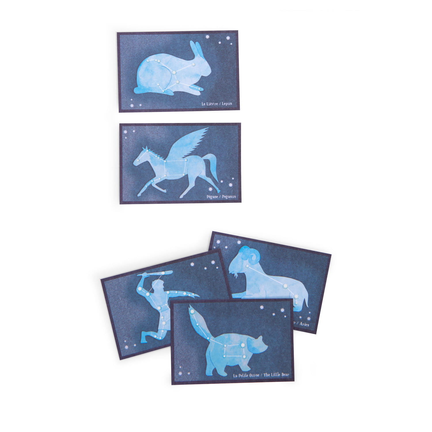 Zestaw zawiera: 1 zeszyt ćwiczeń, 16 kart astronomii, 1 ulotka o Księżycu, 5kart 3D z okularami, 10 obrazów konstelacji, 30 gwiazd do zawieszenia, 1 mapa nieba, 1 plakat Układu Słonecznego oraz 8 planet wraz ze Słońcem do zawieszenia