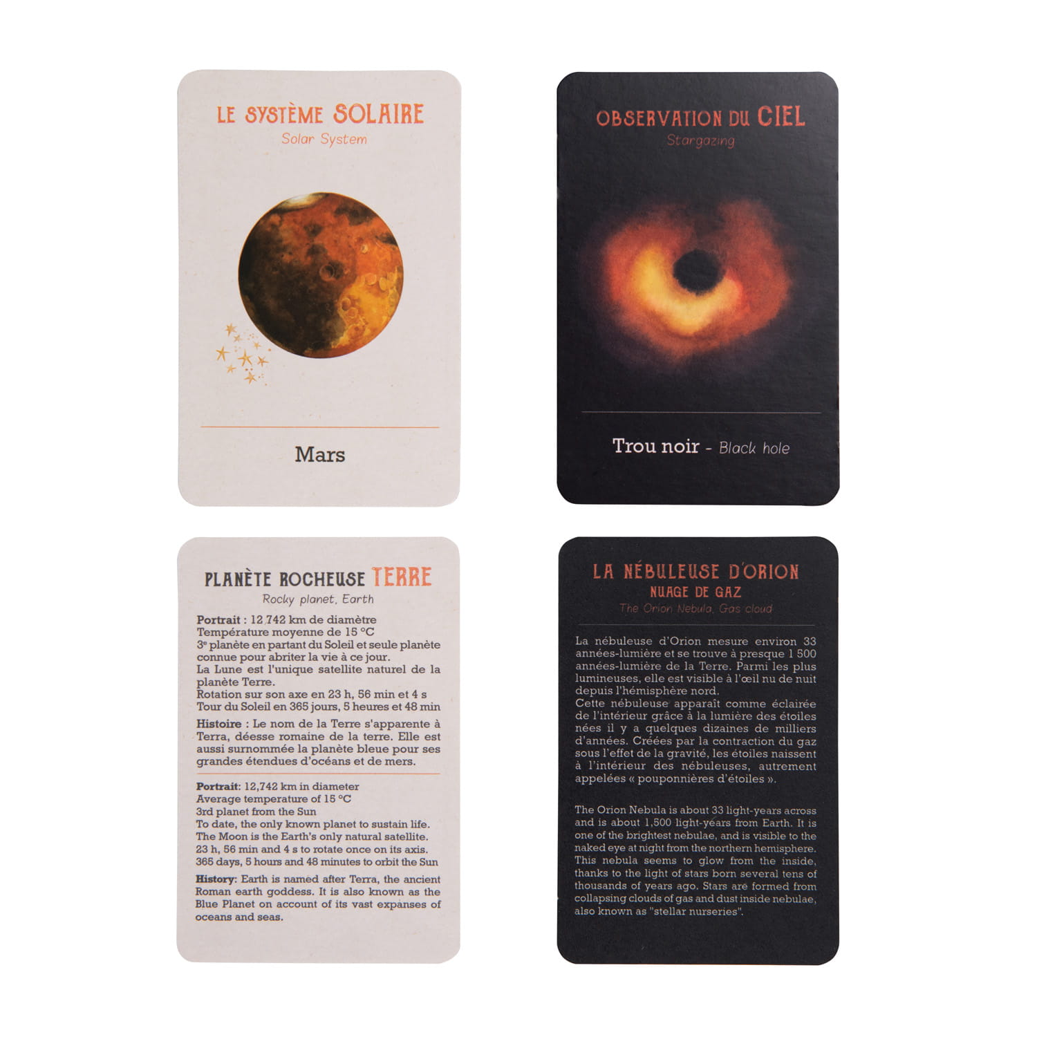 Odkryj cuda kosmosu! W tym edukacyjnym pudełku dzieci znajdą wszystko, czego potrzebują, aby podróżować z Ziemi na inne planety: Merkury, Wenus, Mars... Zestaw zawiera aż 75 akcesoriów, które pomogą zrozumieć zjawiska wszechświata: karty astronomiczne, konstelacje, karty 3D, zeszyt ćwiczeń… Idealny prezent dla miłośników kosmosu.