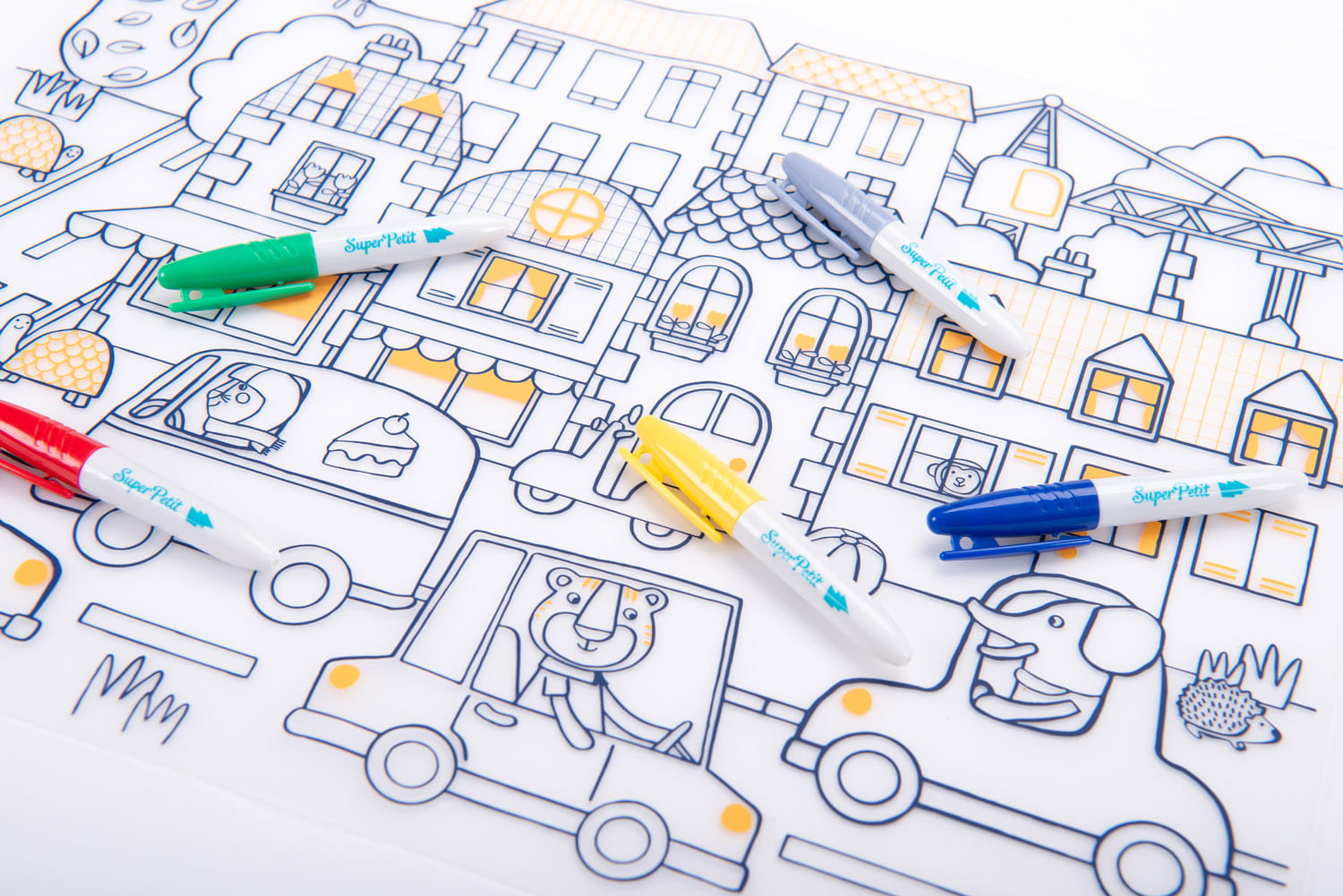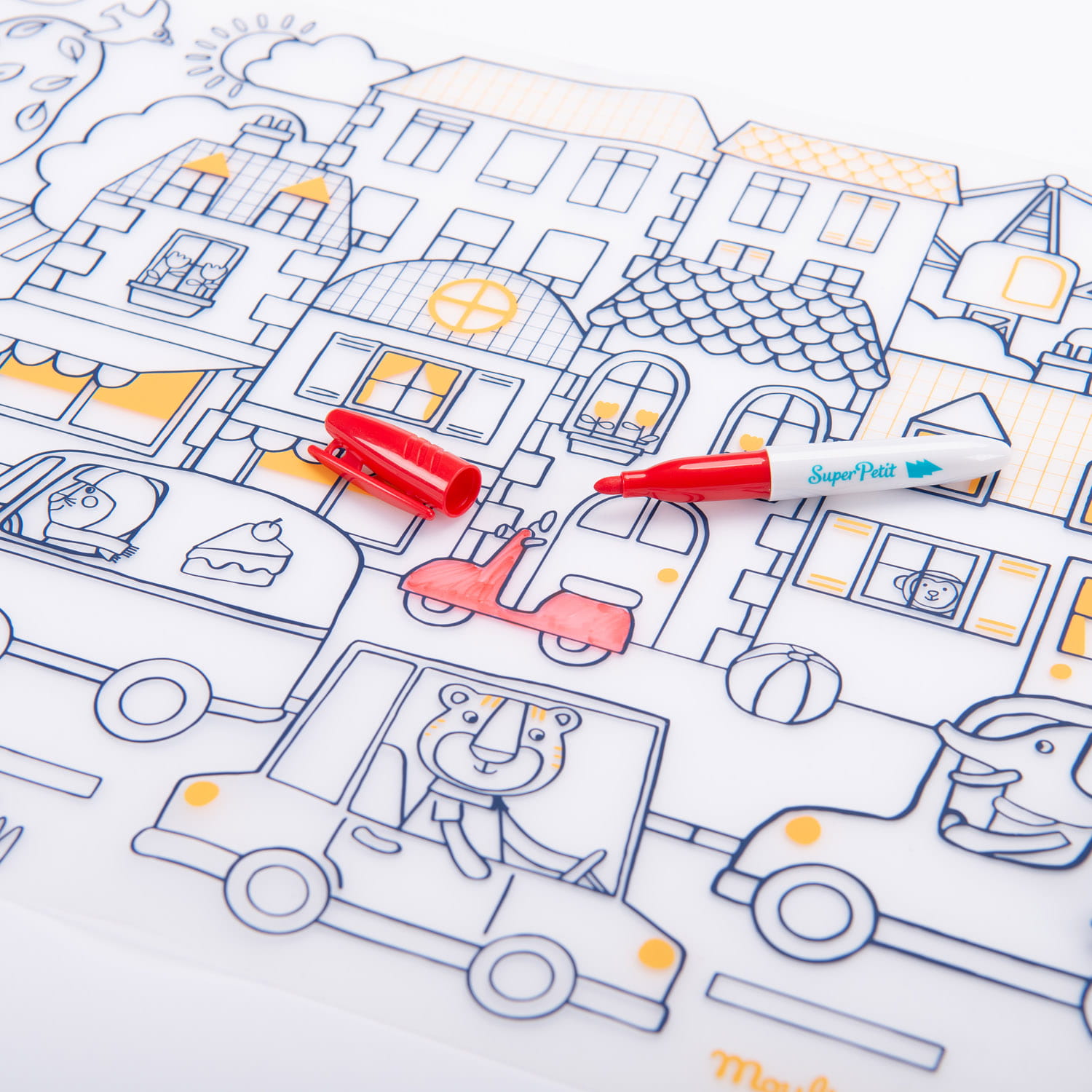 Zabawka powstała we współpracy z marką Super Petit - pomysłodawcami wielorazowych mat do kolorowania wykonanych z silikonu, które podbiły serca dzieci w różnym wieku.