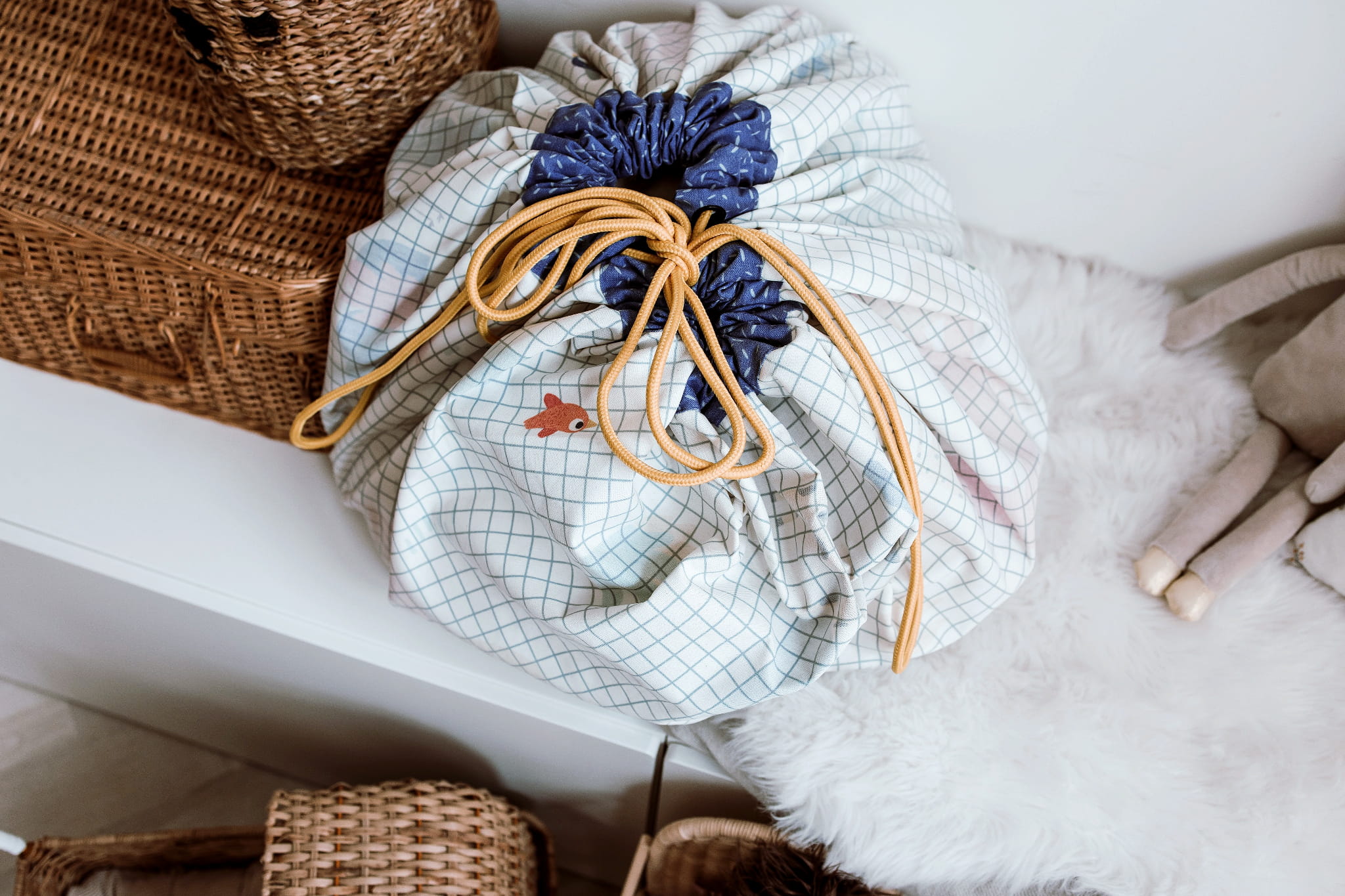 Matę można łatwo zwinąć w praktyczną torbę. Wystarczy pociągnąć za sznurki,