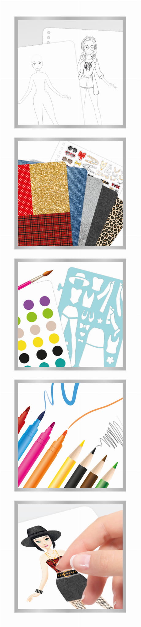 szablonów, a następnie dodaj samoprzylepne akcesoria. Szkicownik w formie