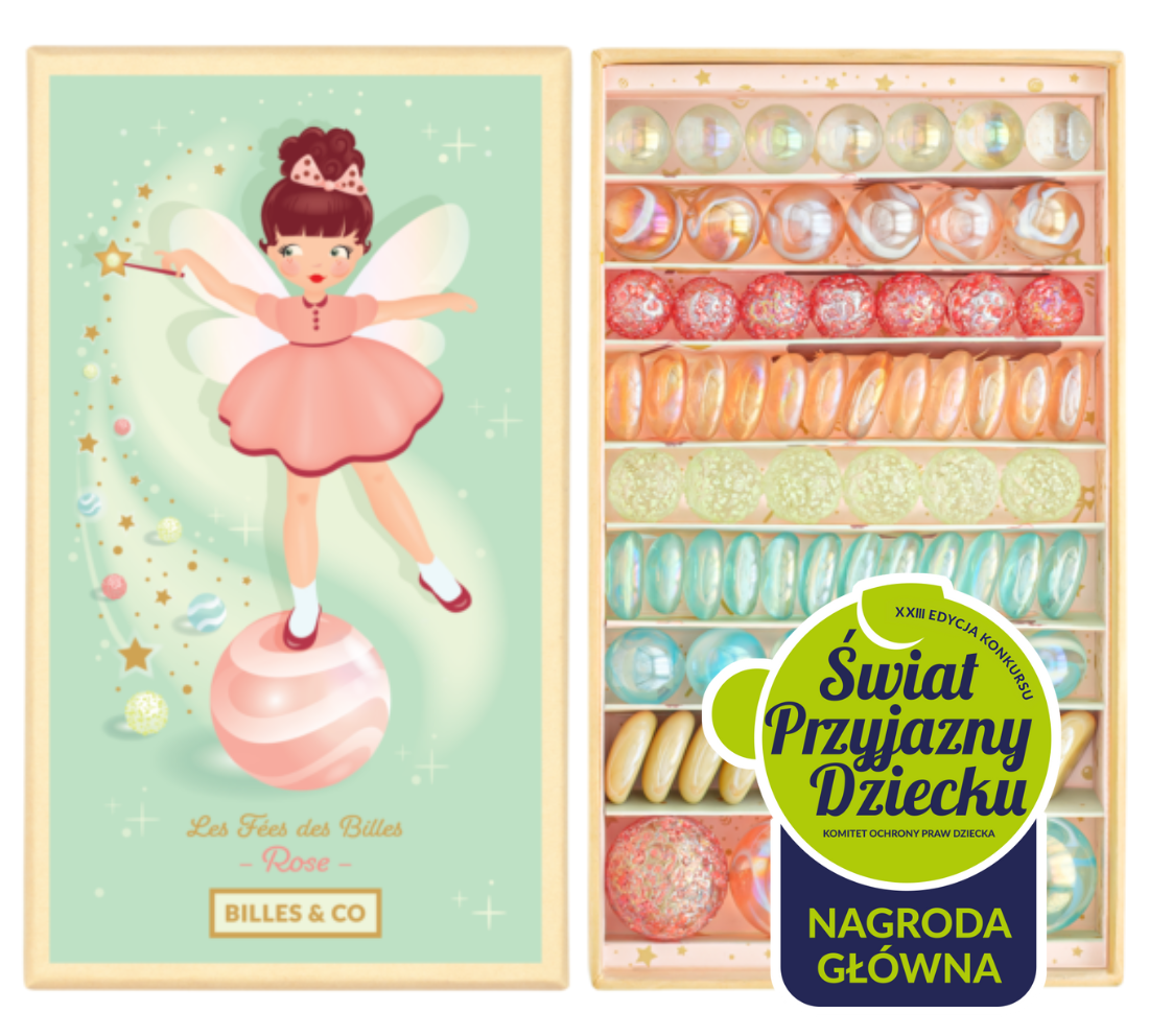Billes&Co ŚWIAT WRÓŻEK to zestaw 71 szklanych kulek i kamyczków, kolorystycznie ułożonych w pięknie zdobionym pudełku. Przeróżne barwy, tekstury i wzory kulek posiadają hipnotyzującą moc, która nie pozwoli oderwać się od zabawy. Kulki są ułożone tematycznie, tworząc w małych pudełeczkach swoiste uniwersa.