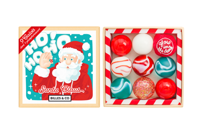Billes&Co ŚWIĘTY MIKOŁAJ to zestaw 9 szklanych kulek o średnicy 25 mm, kolorystycznie ułożonych w pięknie zdobionym pudełku. Przeróżne barwy, tekstury i wzory kulek posiadają hipnotyzującą moc, która nie pozwoli oderwać się od zabawy. Kulki są ułożone tematycznie, tworząc w małych pudełeczkach swoiste uniwersa.