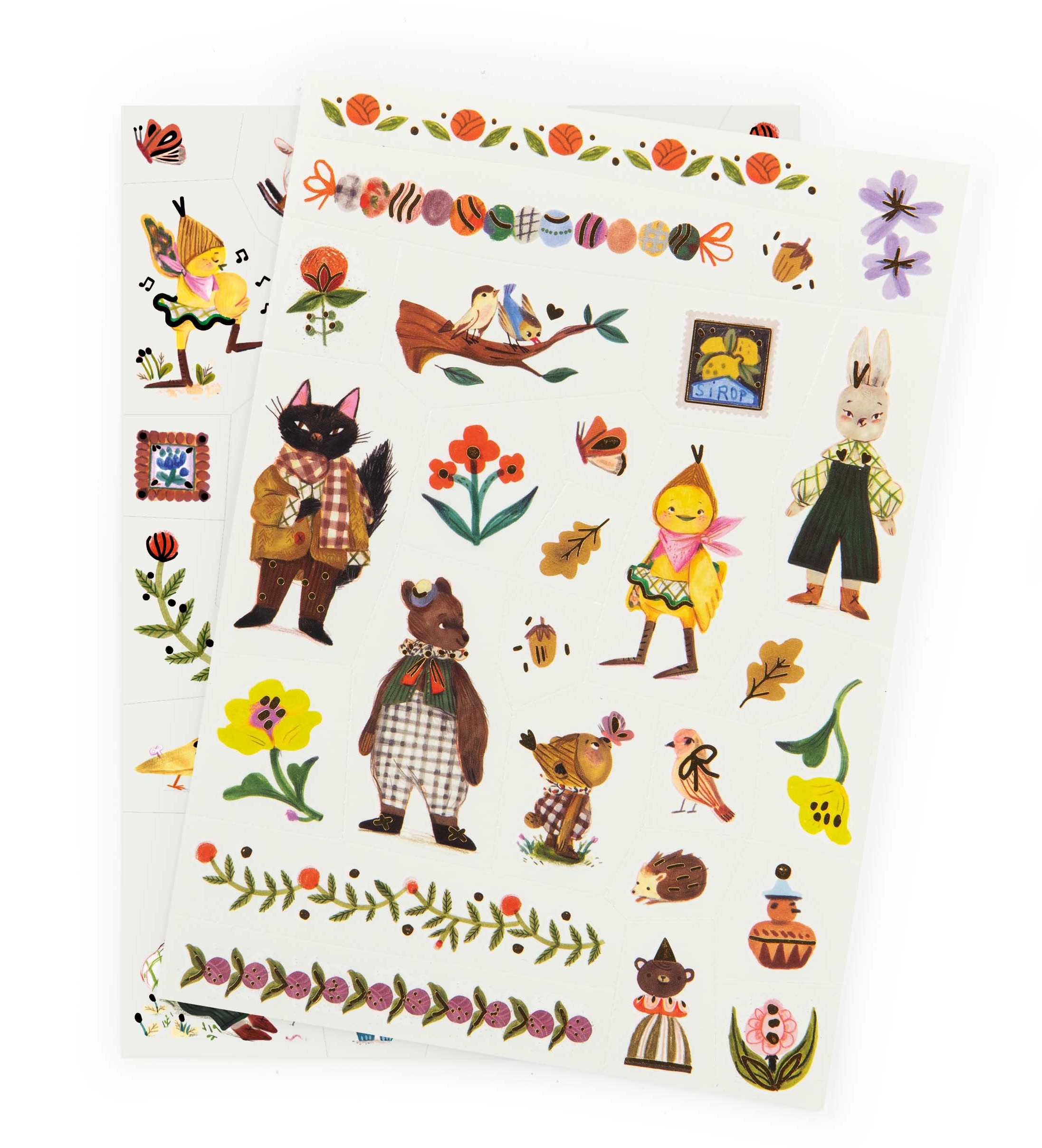 Bajeczny świat Les Minouchkas teraz dostępny w formie zmywalnych tatuaży! Ilustracje Lucille Michieli znajdują się na 2 arkuszach, które są wstępnie wycięte, aby ułatwić wybieranie odpowiednich wzorów.